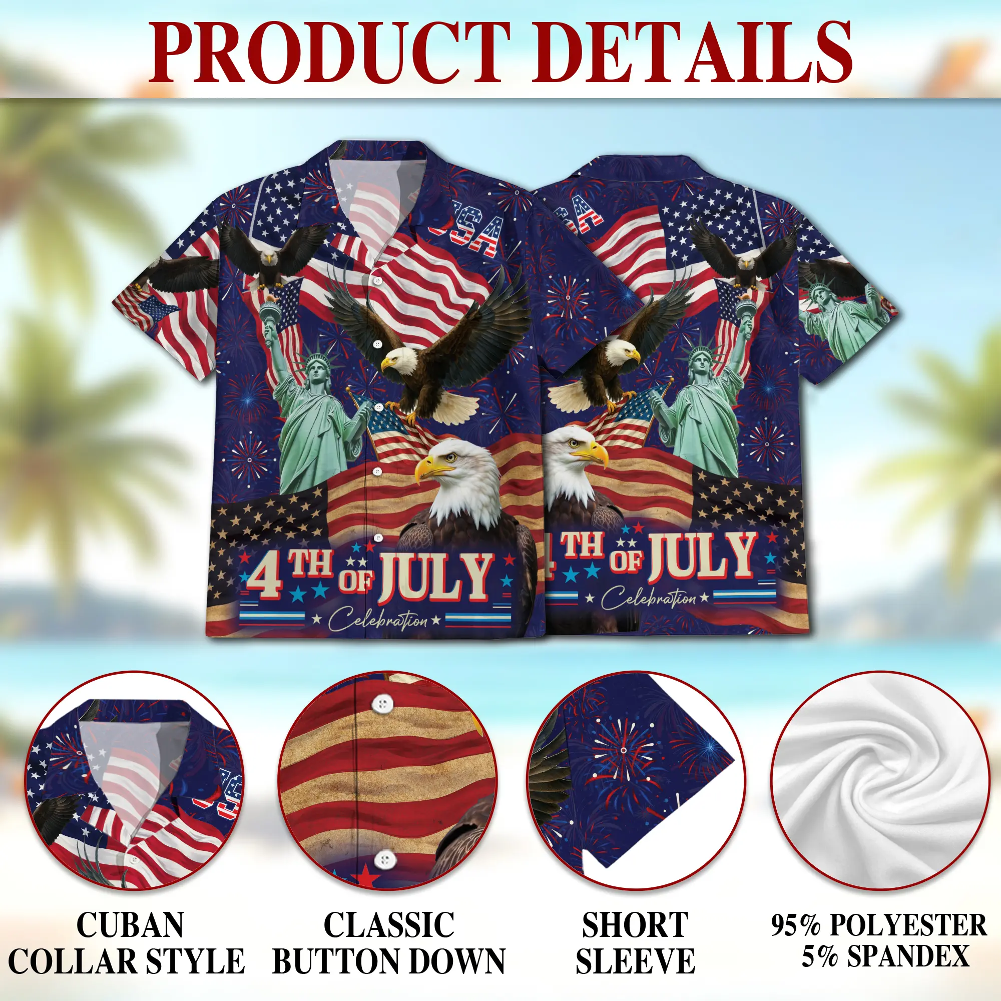 5. 4th July US Independence Day Hawaiian Shirt, 4th of July Hawaiian Shirt, Button Down Short Sleeve Pattern Hawaiian Shirt Man