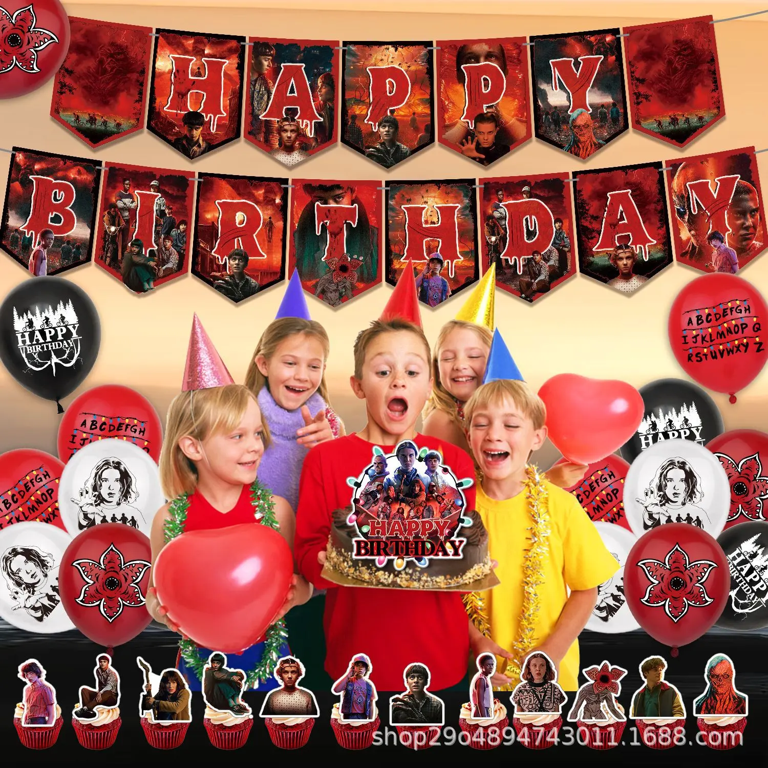 Movie Themed Birthday Decor Set - Includes 1 “Happy Birthday” banner, 1 cake topper, 24 cupcake decorations, and 16 latex balloons (4 designs). No additional accessories needed—effortlessly set up a complete party scene for hassle-free planning.