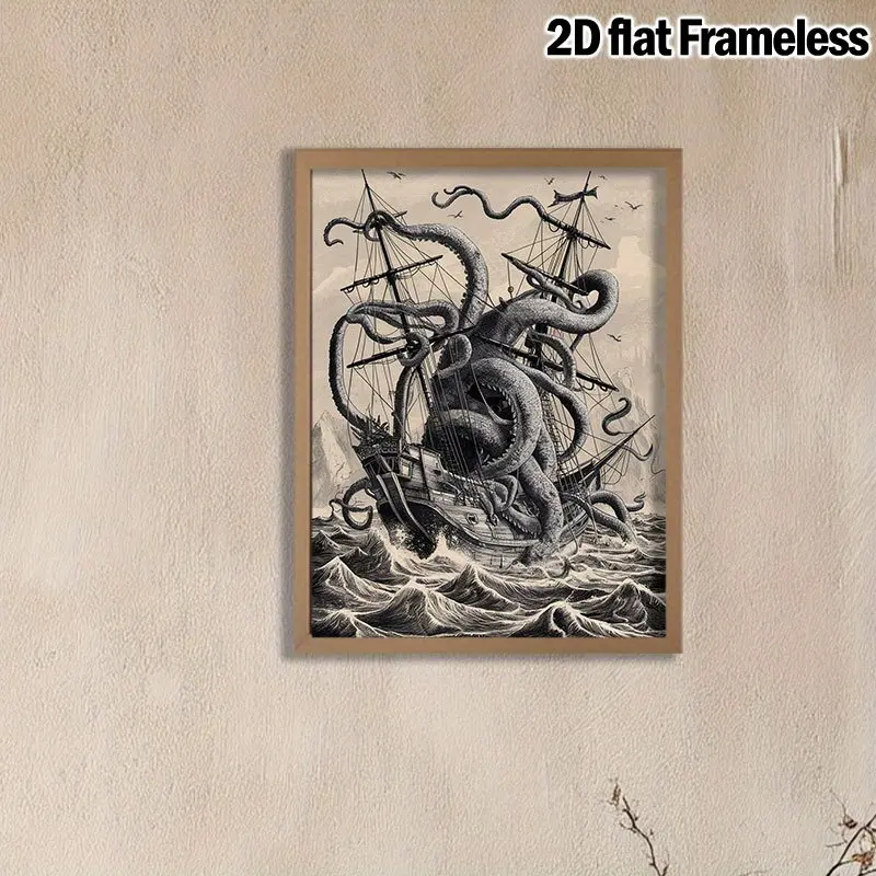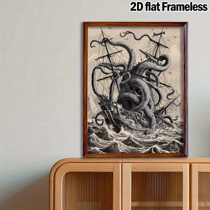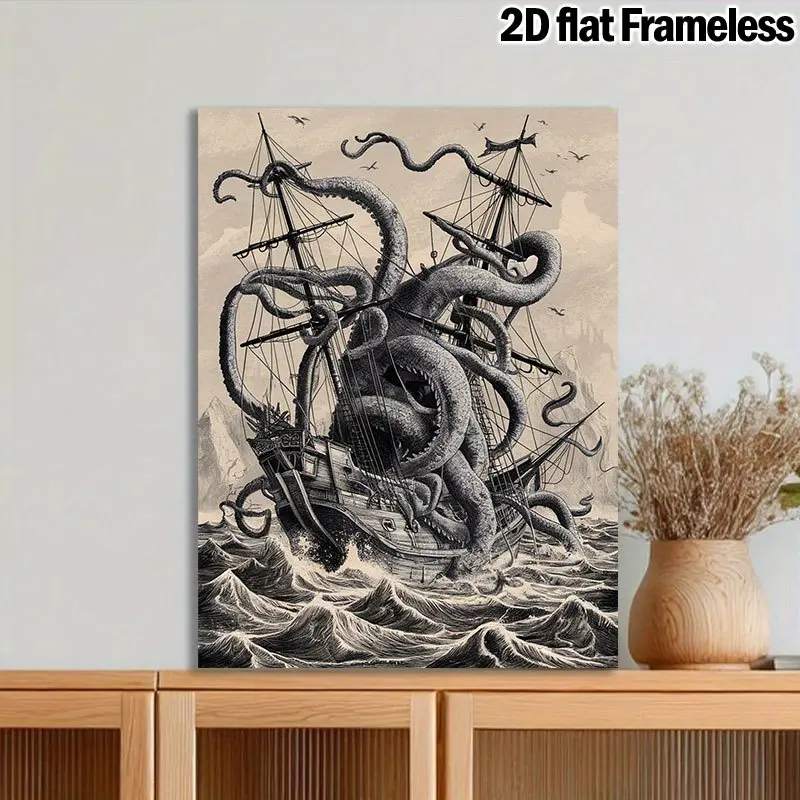 5. Octopus Attack Canvas Prints, Room Decor Wall Art Poster, Vintage Sea Monster Wall Art Painting for Bedroom Kitchen Cafe Nautical Decor