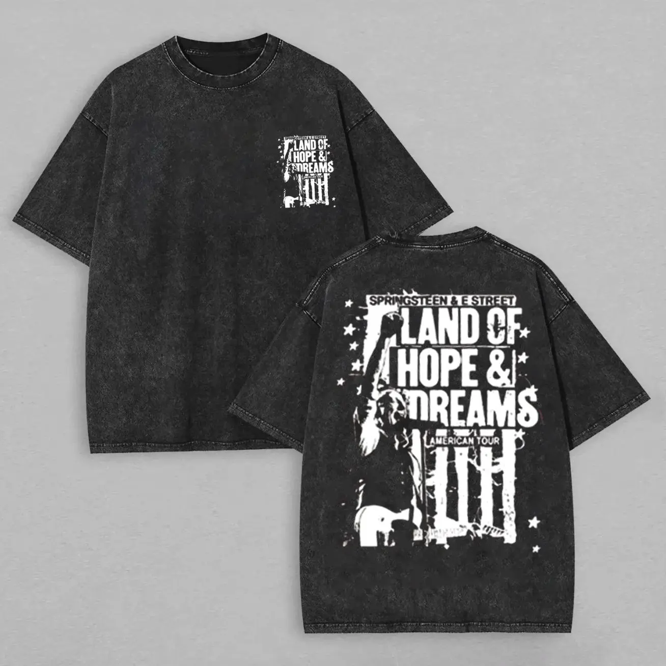 Bruce Springsteen E Street Band Tour 2026 Inspired Shirt, Acid Wash Rock Fan Tee, Vintage Style Front Back Graphic T-Shirt 876