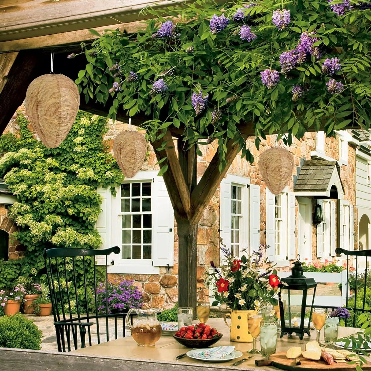 WHERE TO STRING - We recommend stringing up wasp nest at the edge of the house from the rooftop, or stringing near your garbage cans where sweet, sugary foods can attract wasps. Next to any standing water is also a good idea if there are any pool or pond you have because wasps (hornets, yellow jackets and bees) love a dip in the pool
