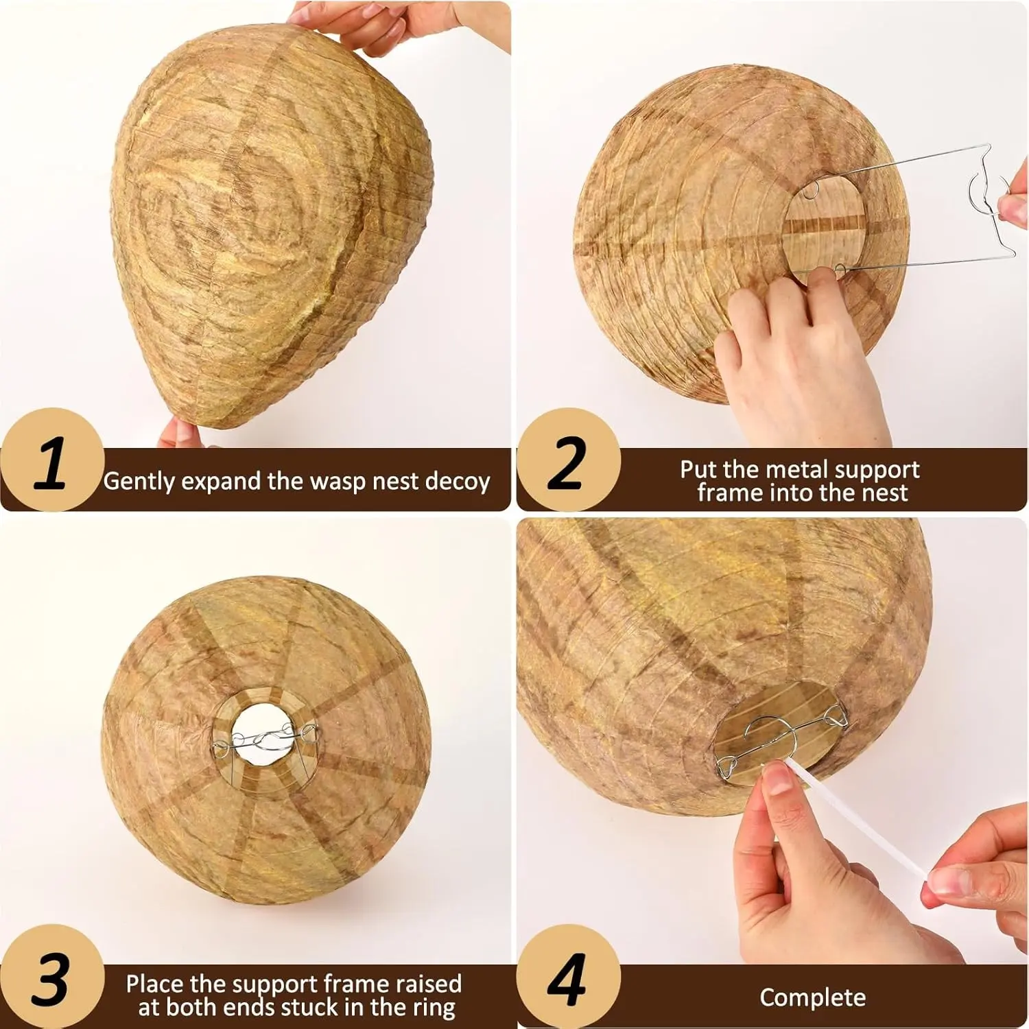 EASY TO DEPLOY - Only a few steps to assemble the wasp nest decoy, and then you can hang wasp nest decoy on eaves, decks, dense tree canopy or any other outdoor area protected from rain. Please do not place wasp nest decoy in a humid area to avoid damage