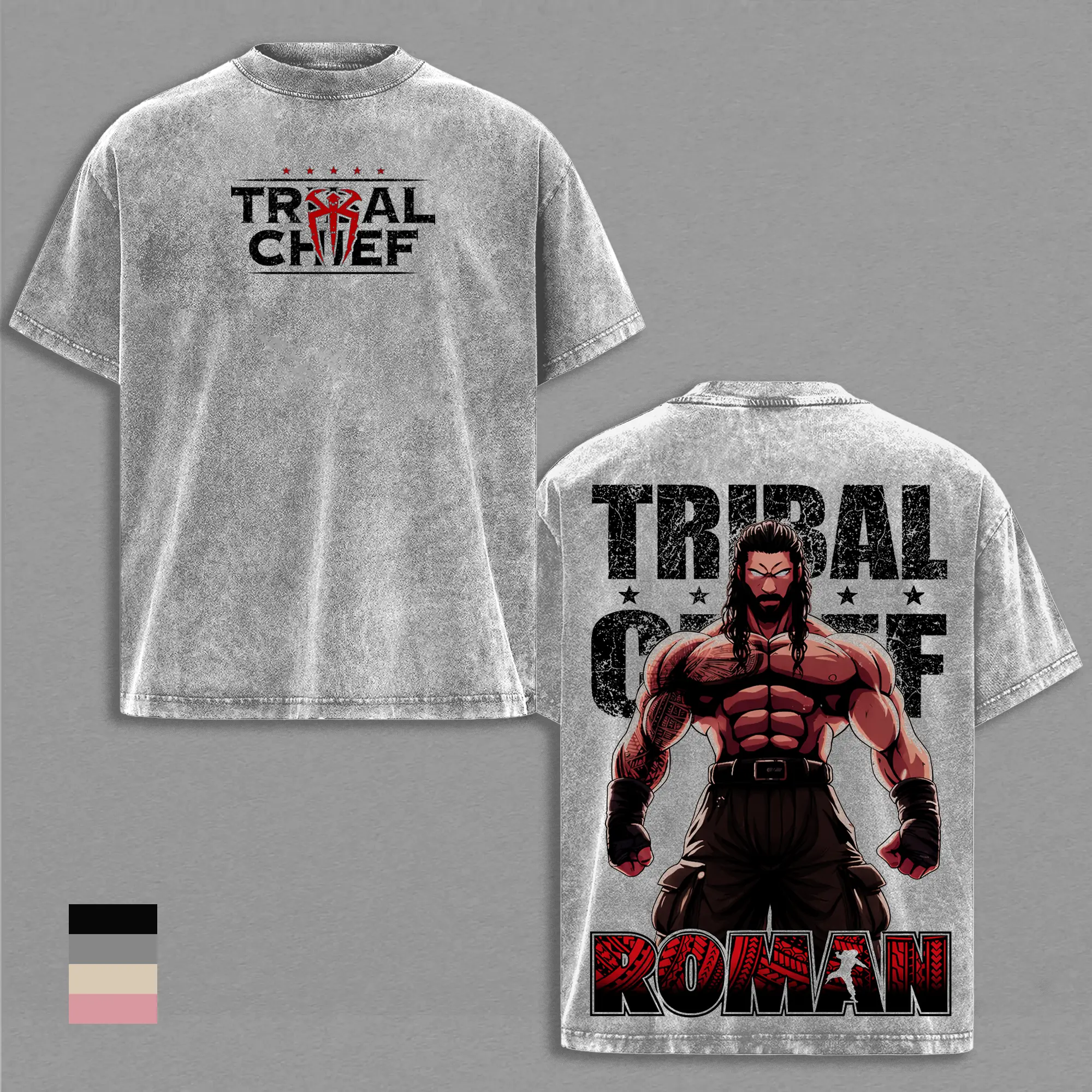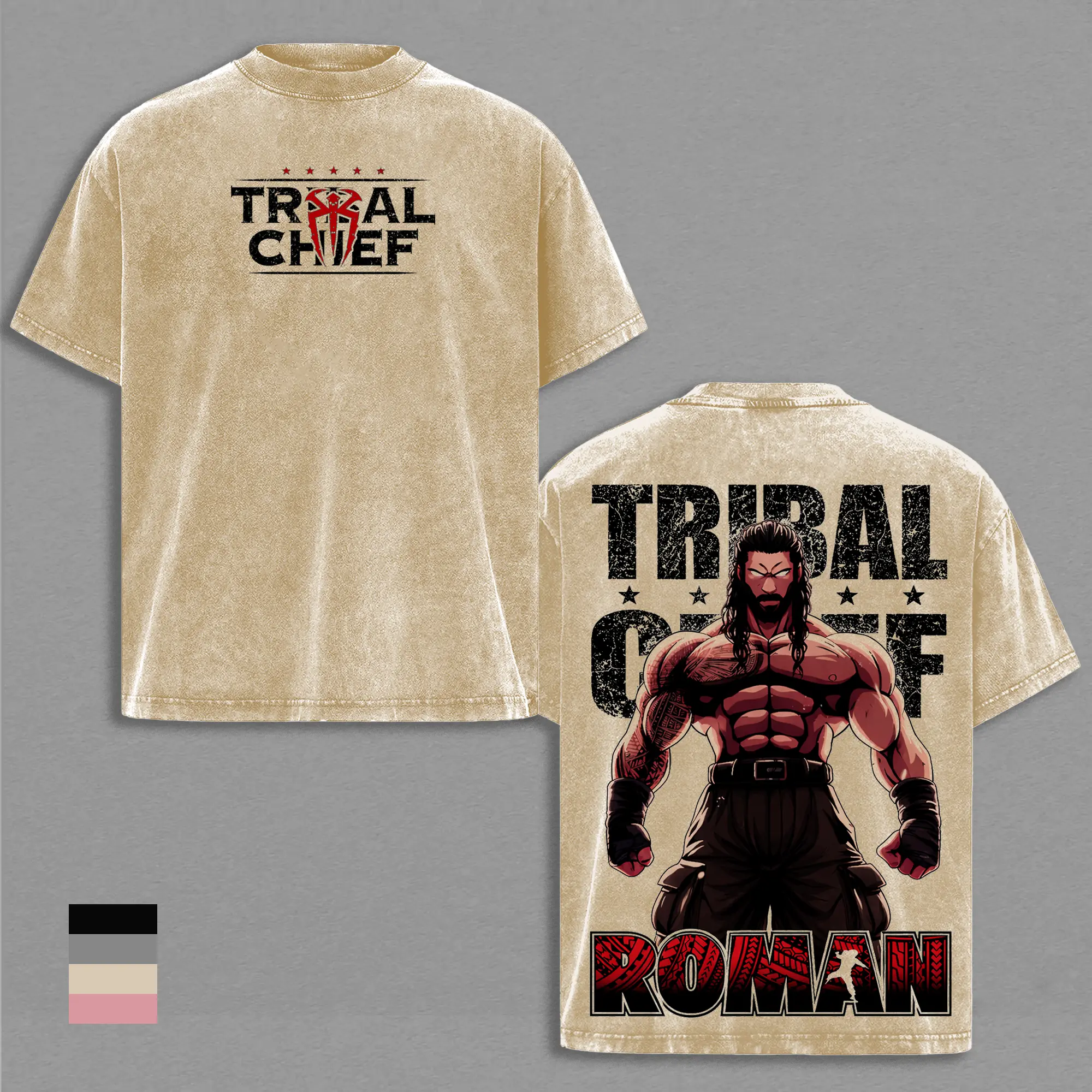 Roman Reigns Tribal Chief WWE Shirt Vintage Washed Oversized T Shirt Bloodline Graphic Tee Unisex Streetwear Wrestling Champion Tee WWE Fan Gift