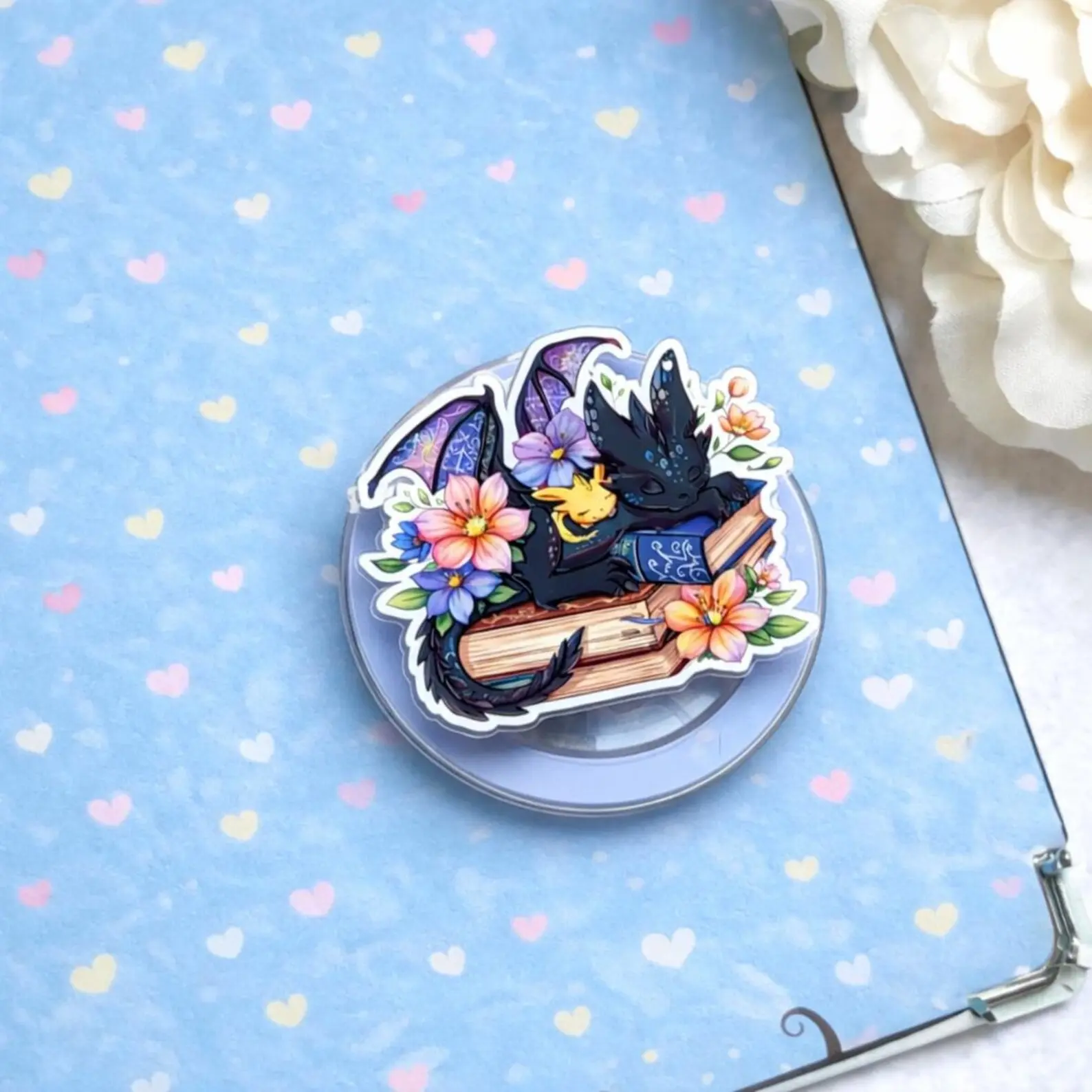 5. Cute Couple Dragon Book MagSafe Phone Grip: Fantasy Bookish Aesthetic Magnetic Phone Holder, Romantasy Reader Gift, Phone or Kindle Popgrip
