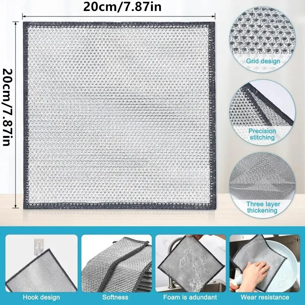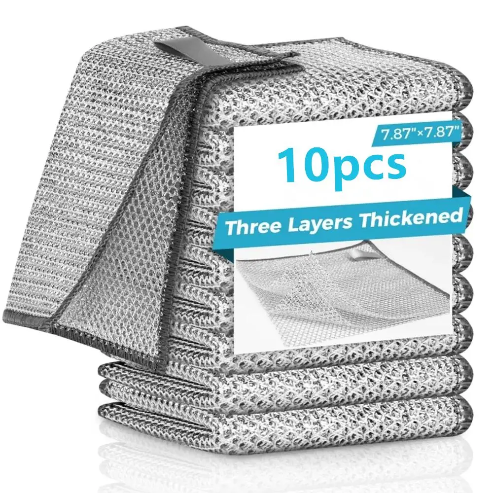 3 Layer Thickened Dish Cloth, 2/10pcs Non-scratch & Odor-free Reusable Wire Scrubber Rag, Kitchen Cleaning Tool for Sink, Stove Top, Countertop, Reusable Cleaning Cloths