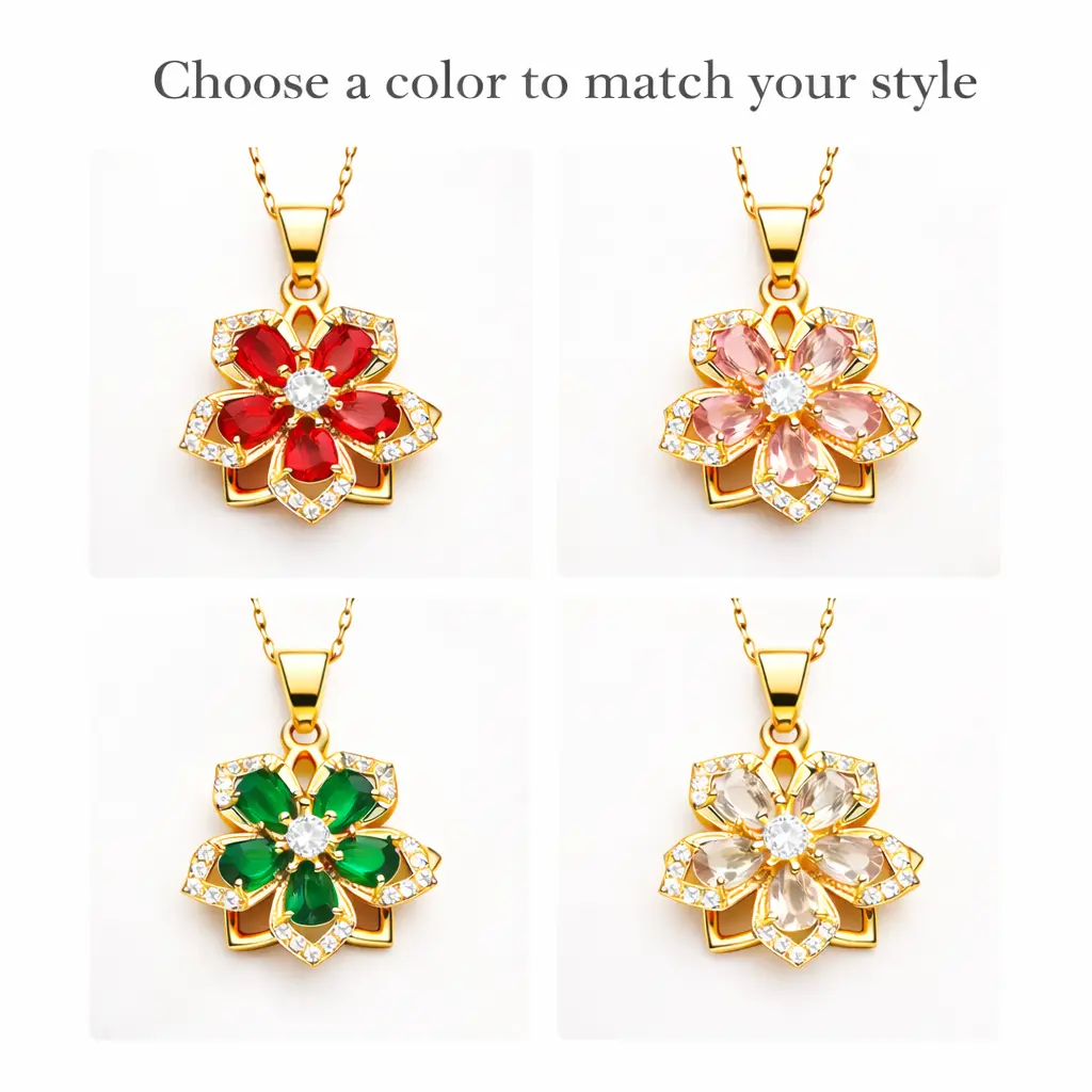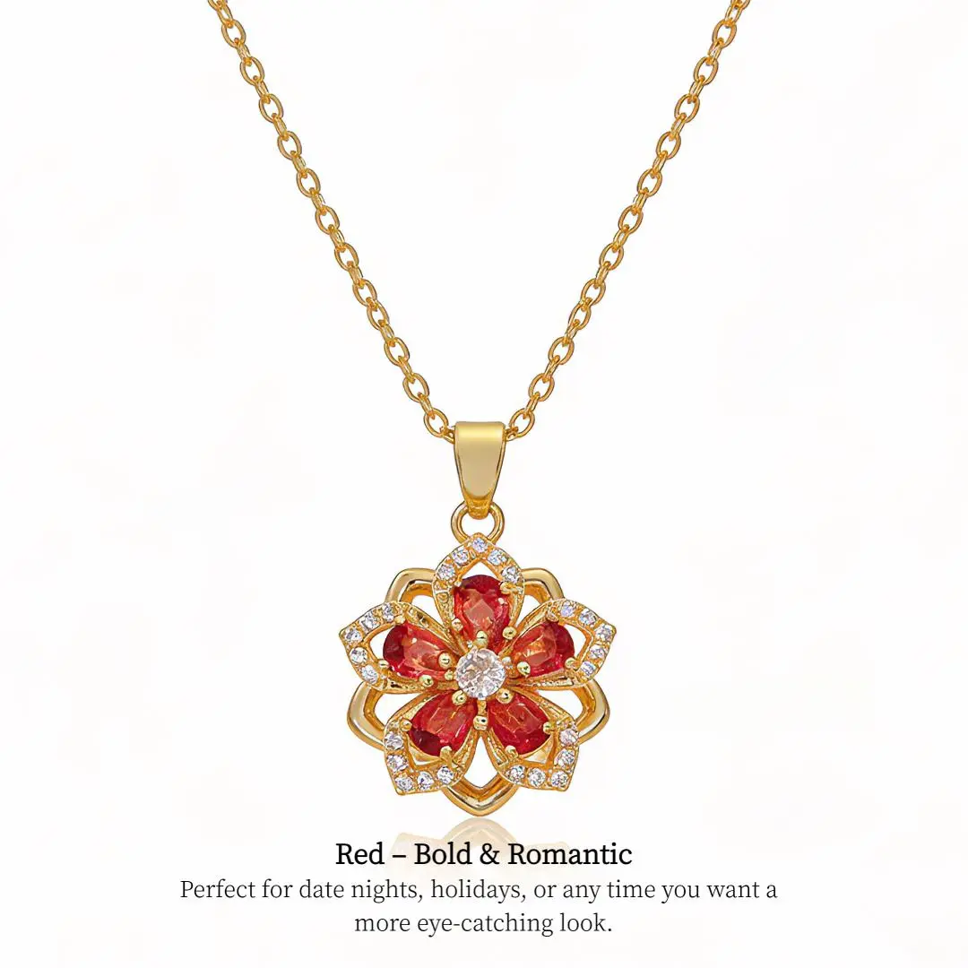 FAITHOPIA Flower Necklace for Women Dainty Rotatable Crystal Blossom Pendant Adjustable 4 Vibes Spinning Floral Jewelry Gift Box Optional