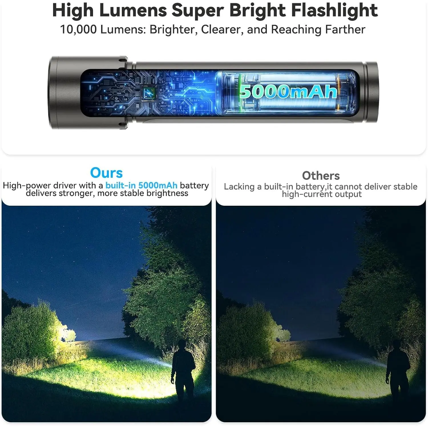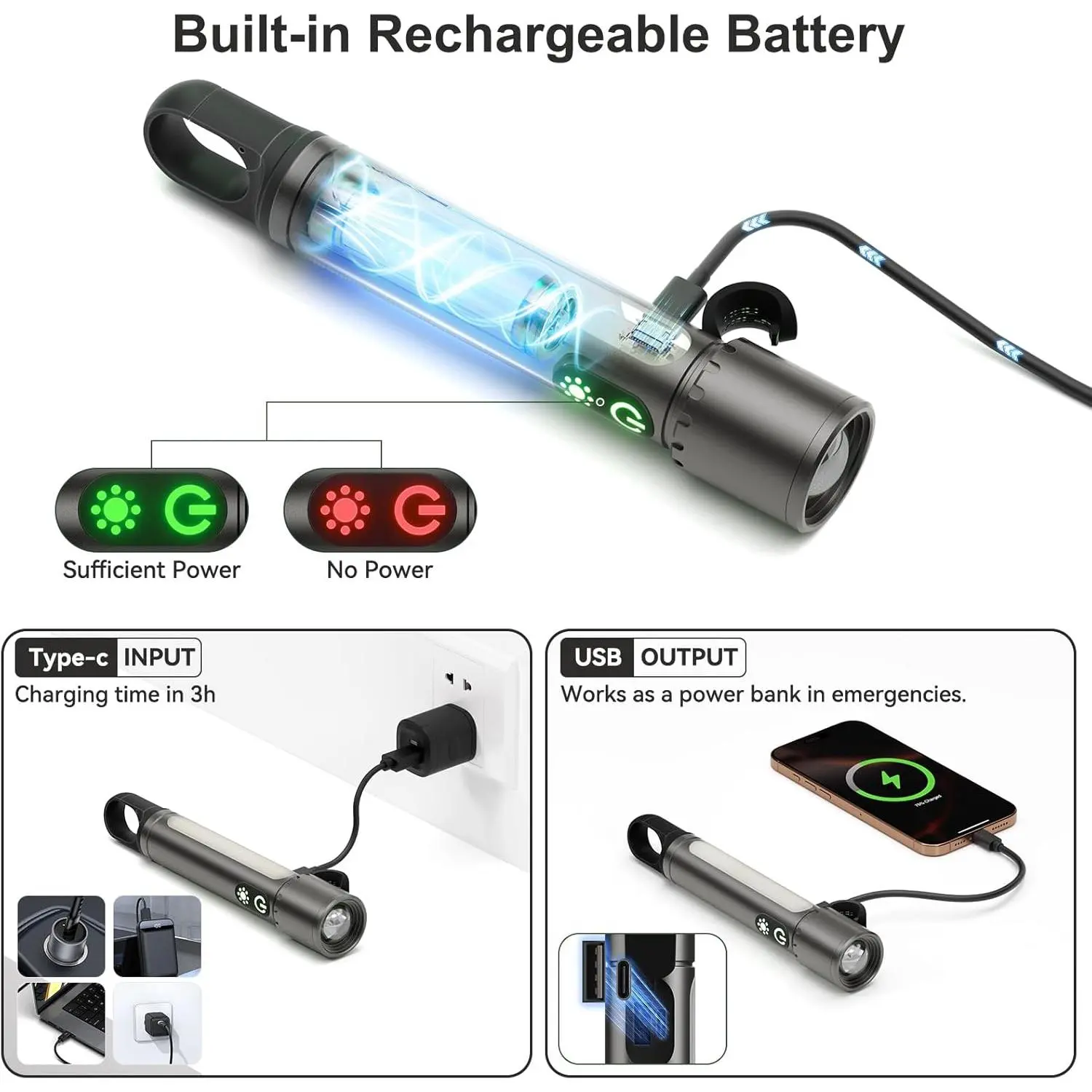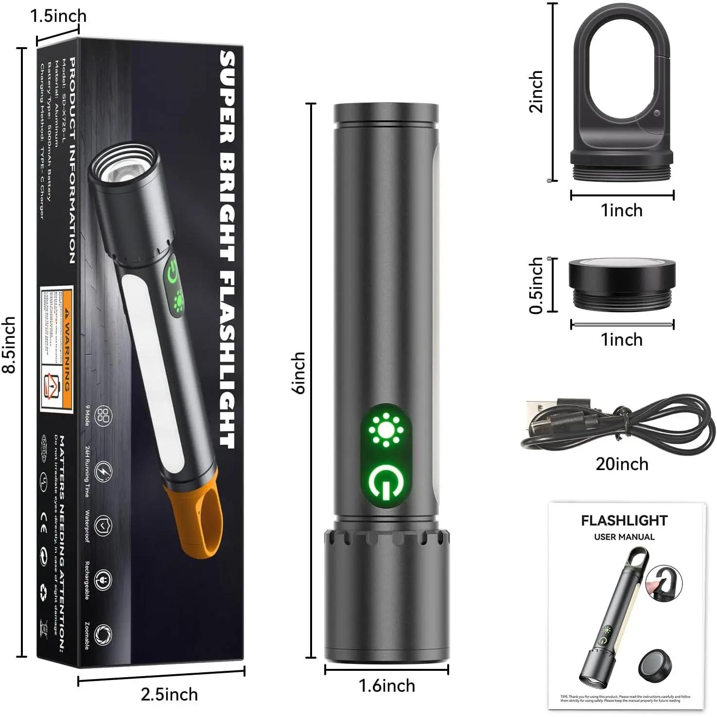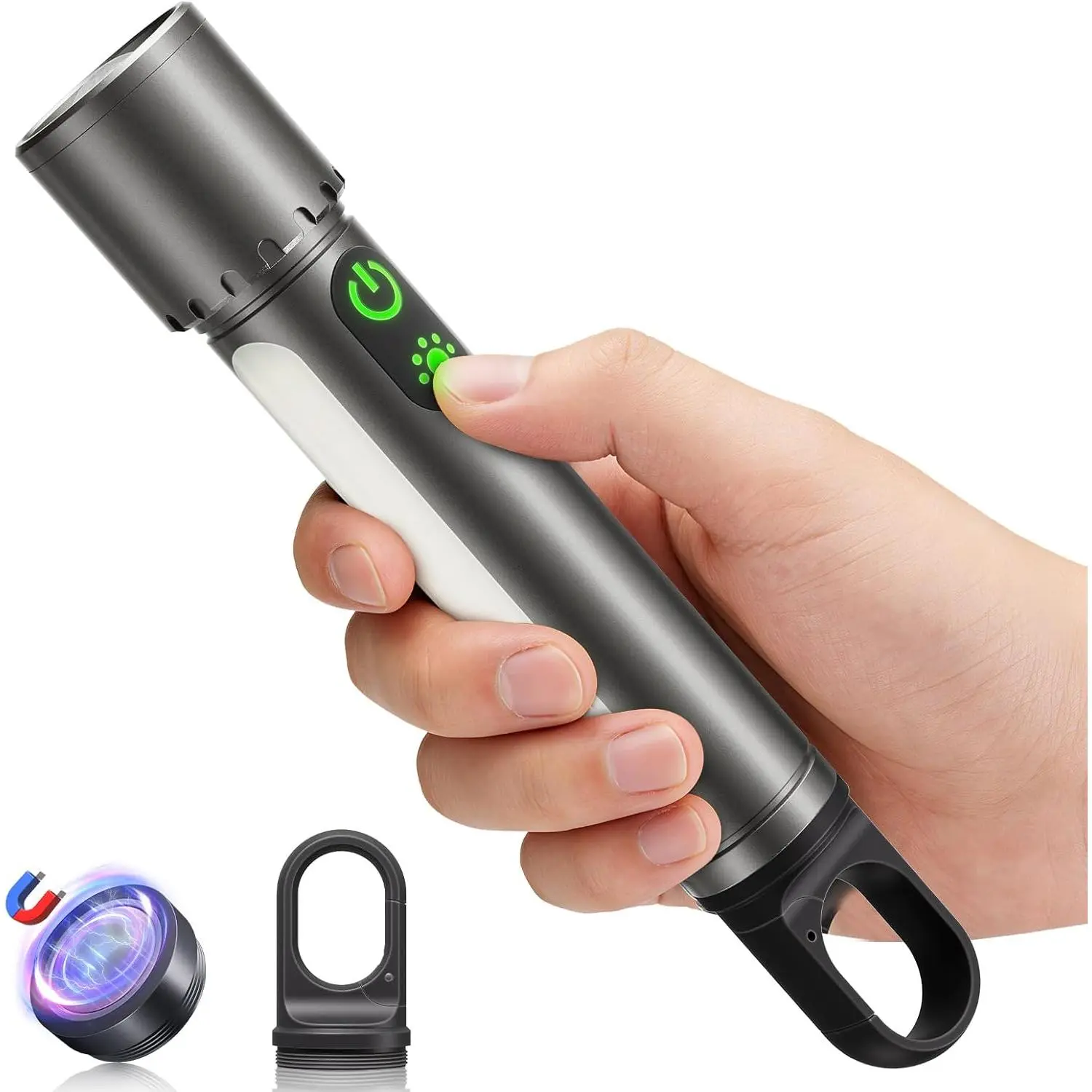 High Lumens Flashlight Rechargeable-Magnetic,Hanging,Zoom Beam,Side Light Multi-Function LED Flashlights Super Bright Powerful Waterproof Flash light for Camping,Emergency,Hiking,Dog Walking,Home