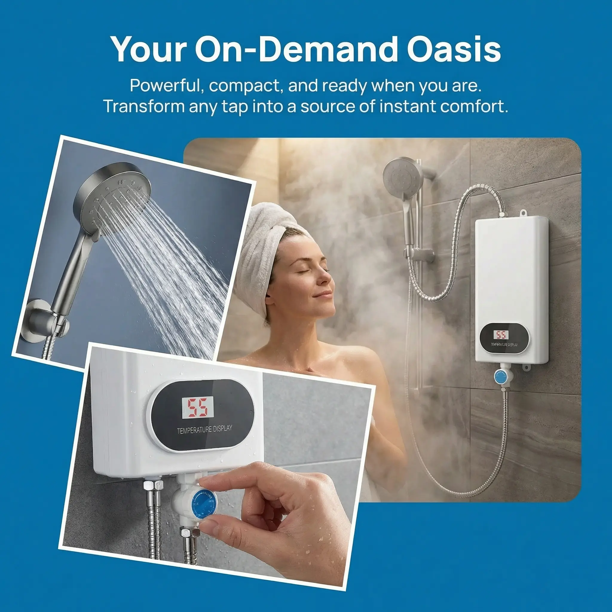This3500W electric tankless water heaterdeliversinstant hot water on demand, so you get a comfortable experience anytime-without bulky tanks or delays.