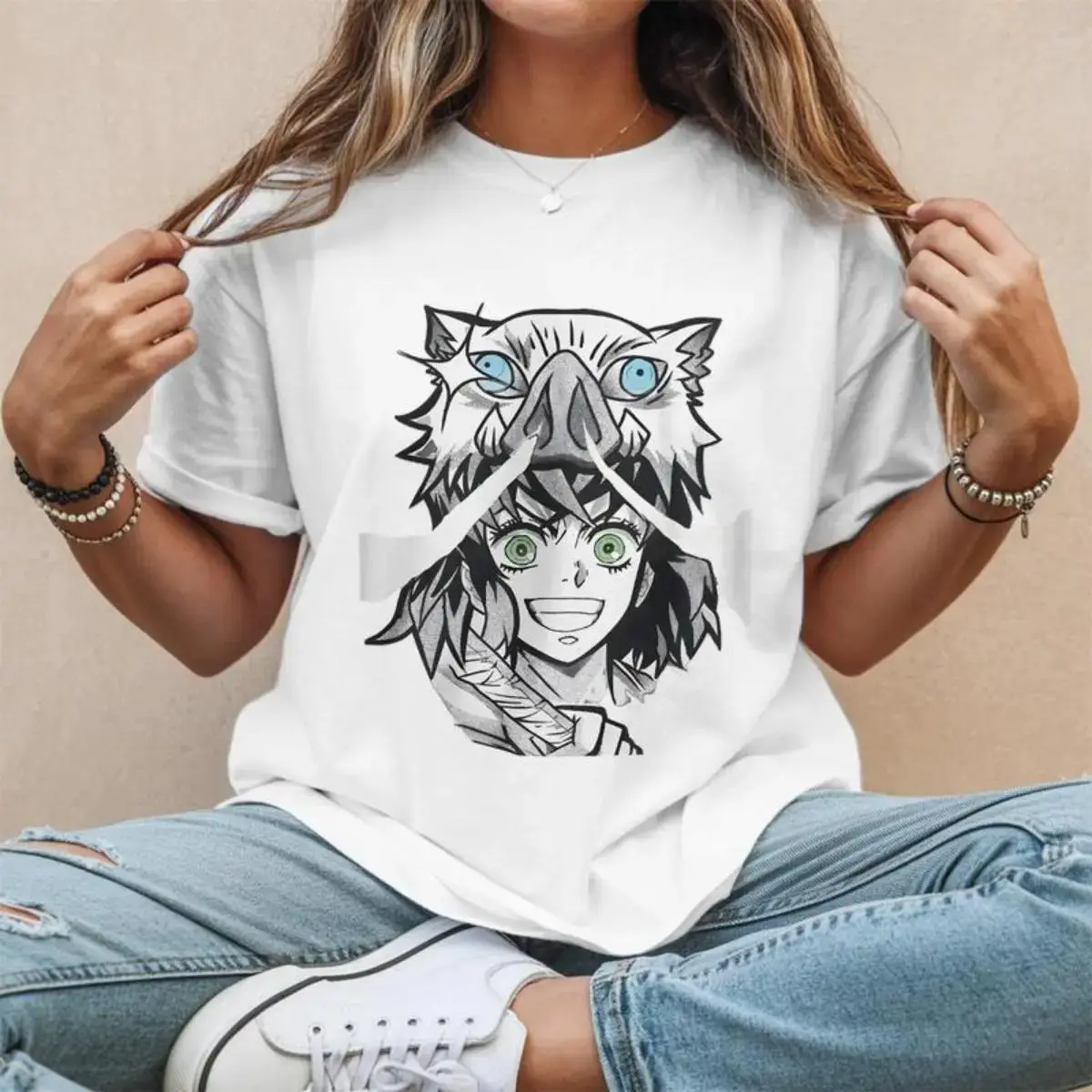 Designed with vibrant, long‑lasting graphic printing, it highlights Inosuke’s classic fierce pose and signature blades, making it a must‑have for any Demon Slayer fan. The versatile casual fit works for teens, youth, adults, and even family matching, while the modern Japanese streetwear style easily pairs with jeans, shorts, joggers, and jackets.