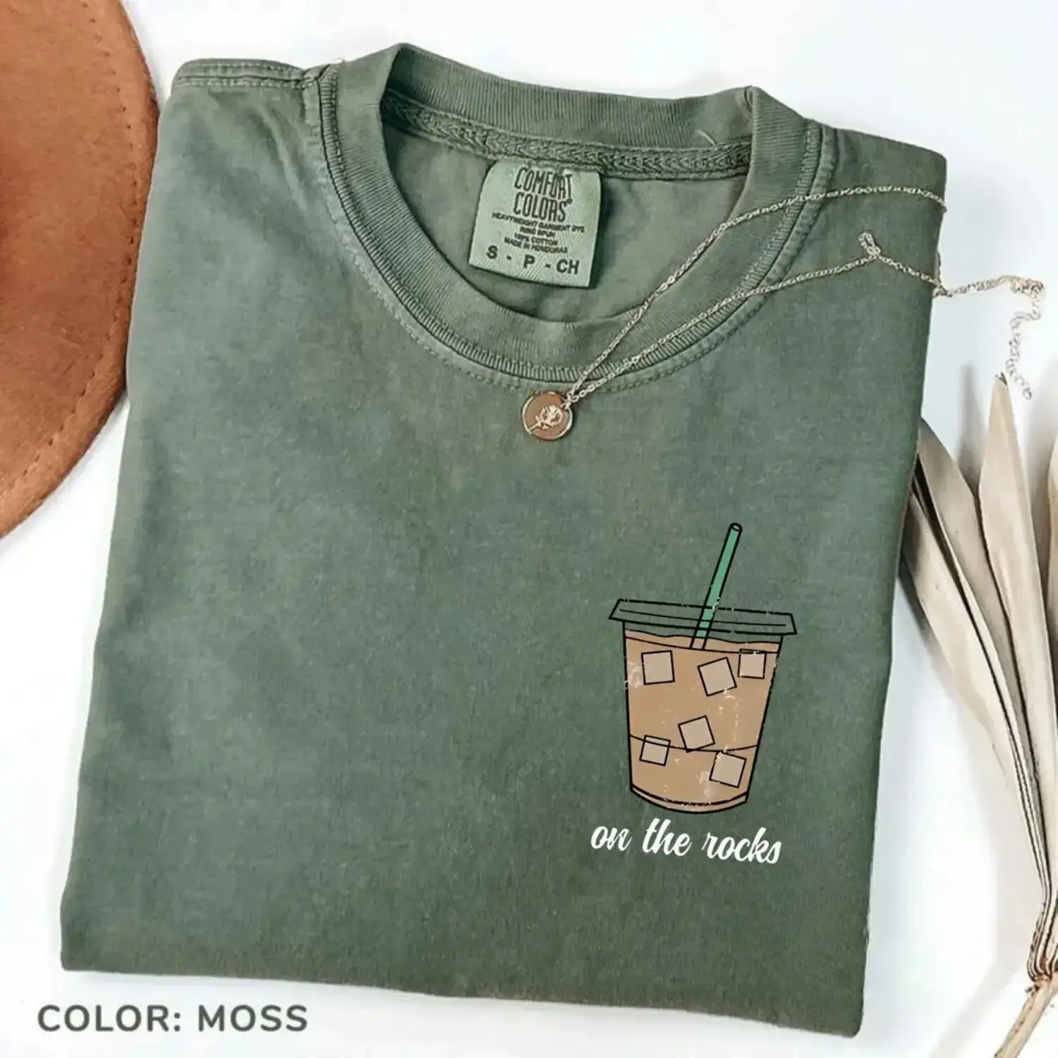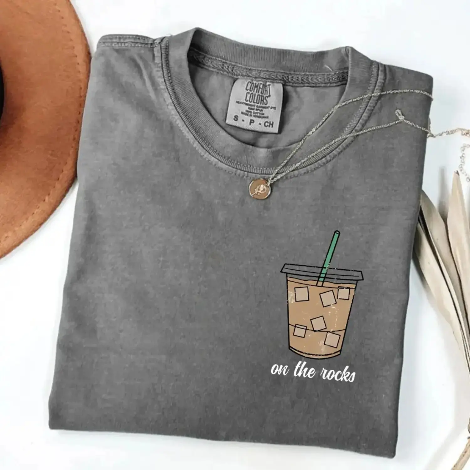Comfort Colors On The Rocks Iced Coffee T-Shirt, Trendy Weather Graphic Tee For Fall, Cotton Shirt For Coffee Lover Women, Apparel Made In USA		Comfort Colors On The Rocks Iced Coffee T-Shirt, Trendy Weather Graphic Tee For Fall, Cotton Shirt For Coffee Lover Women, Apparel Made In USA