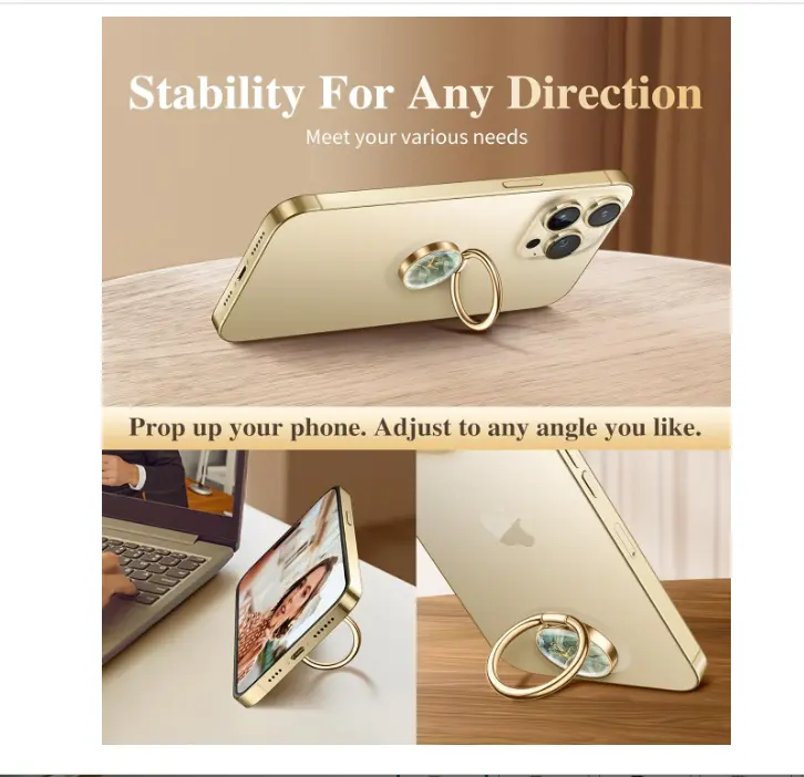 ·[High-Quality Phone Ring Holder] The cell phone ring holder uses the good ductility zinc alloy and sturdy stainless steel, which are durable and prevents it from fading away. The edges of the ring grip are carefully polished to protect your fingers;