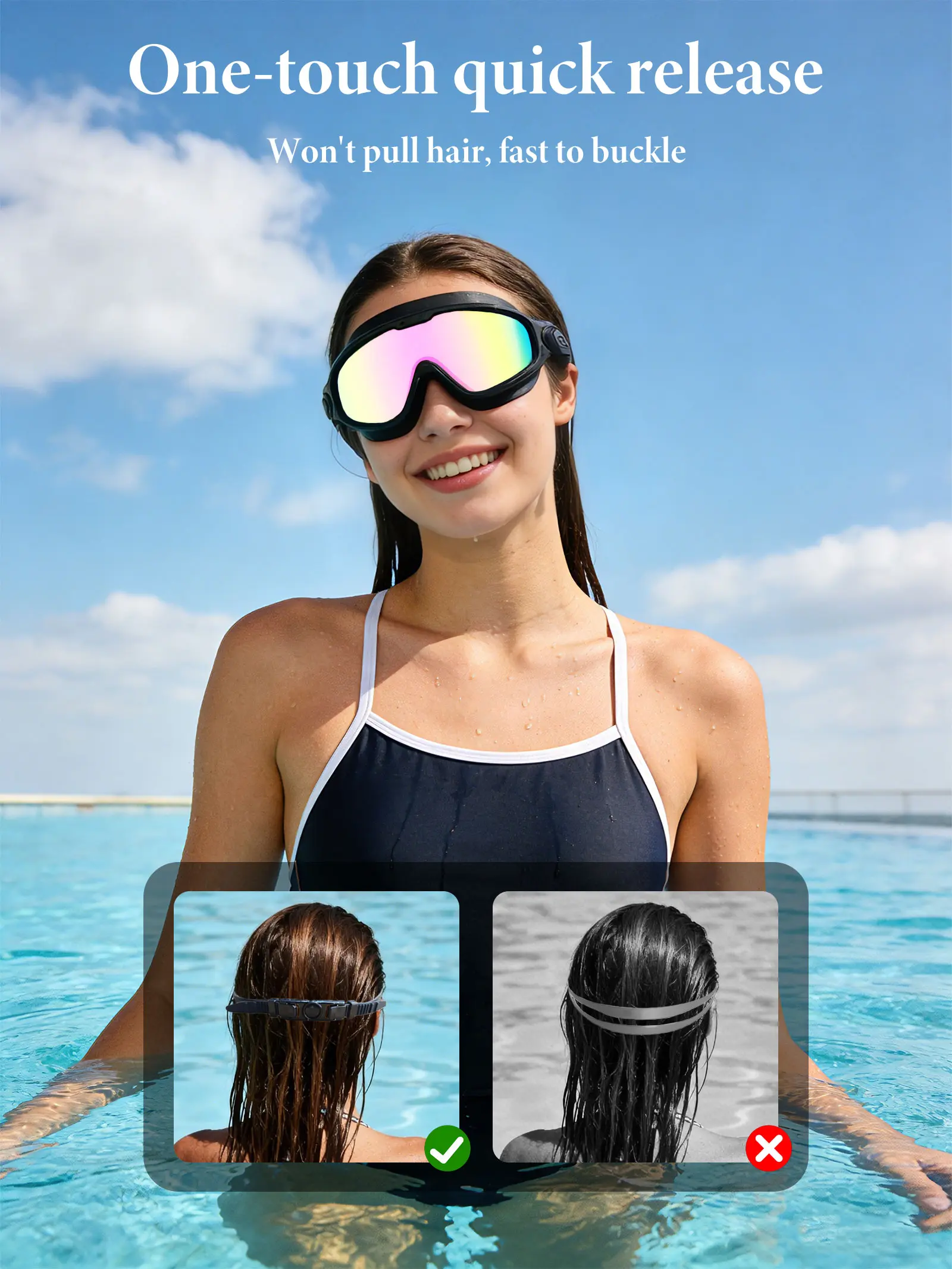 Ideal for various swimming environments. Whether you're at the pool, beach, or open water, these goggles are your reliable companion. Enjoy your swim with confidence and style.