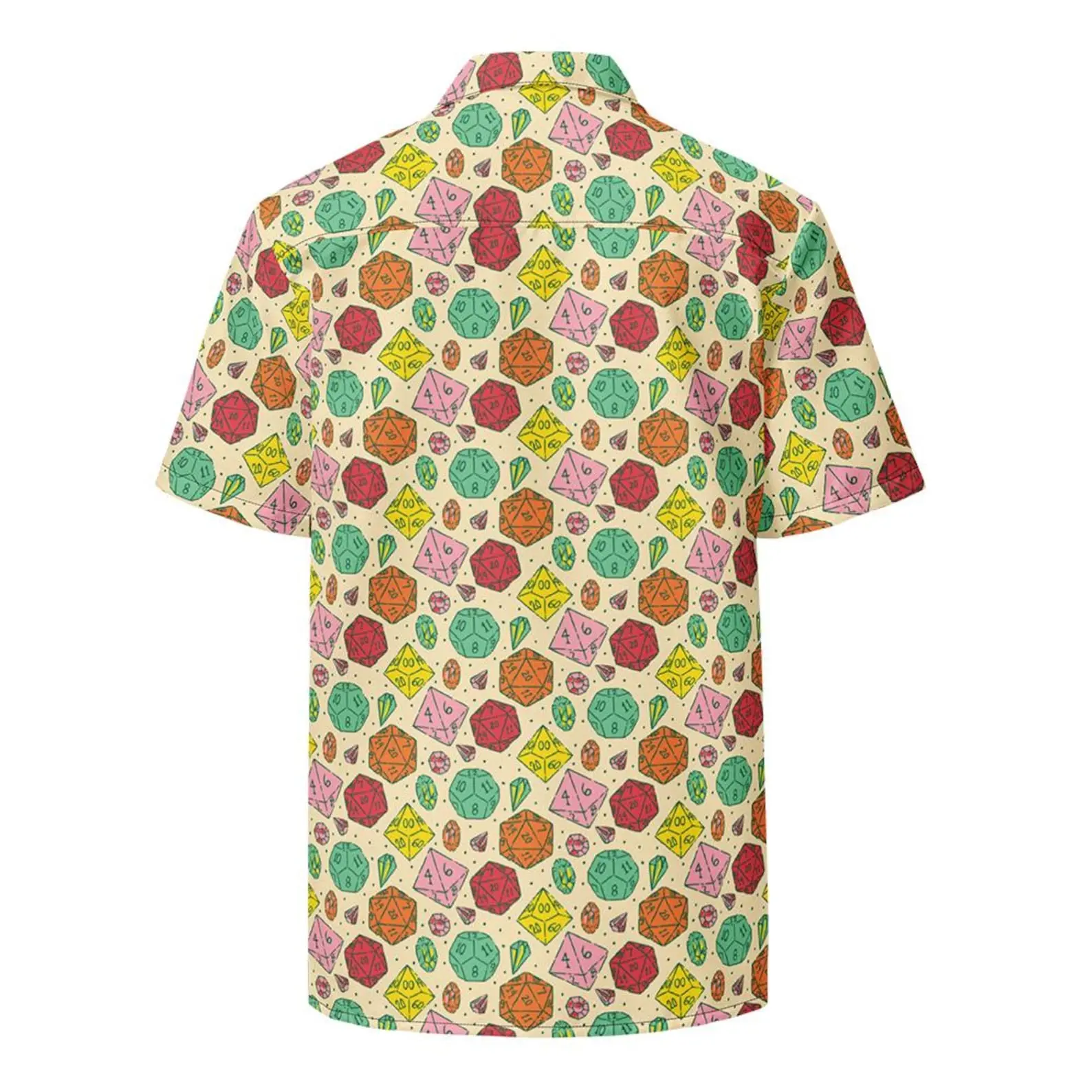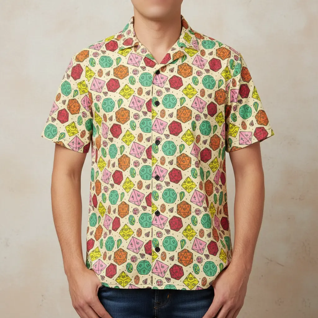 5. D&D Dice Pattern Hawaiian Shirt - Colorful RPG Polyhedral Dice Print Aloha Shirt - Stylish Short Sleeve Button Up for D&D Players, Dungeon Masters & Tabletop Gaming Fans