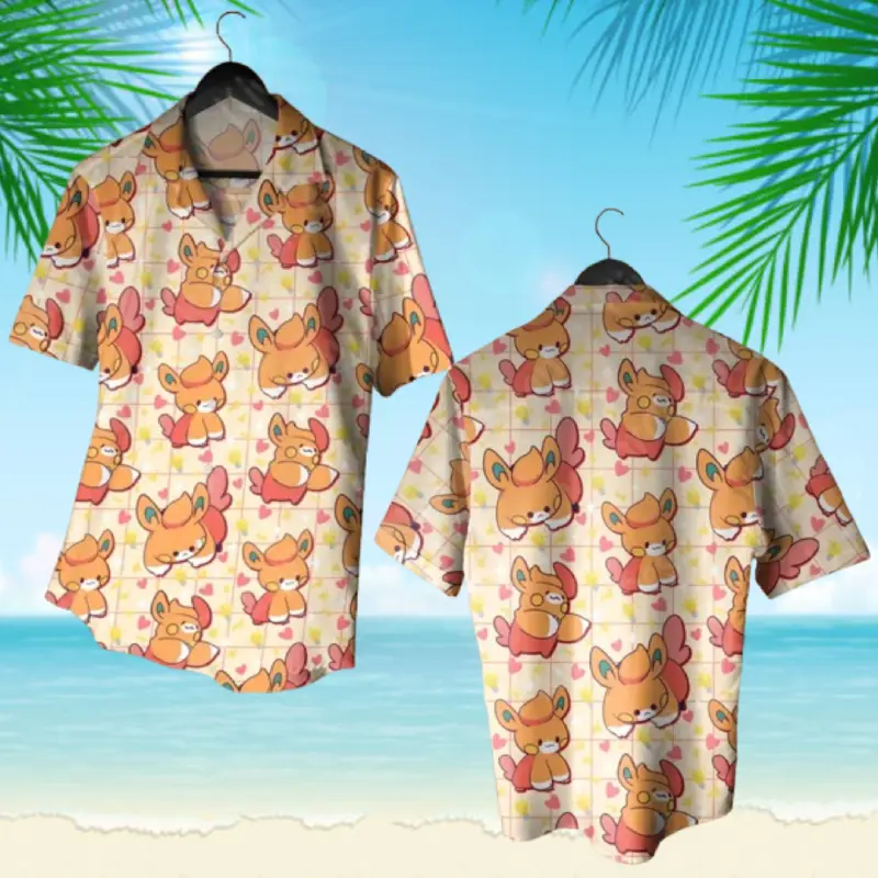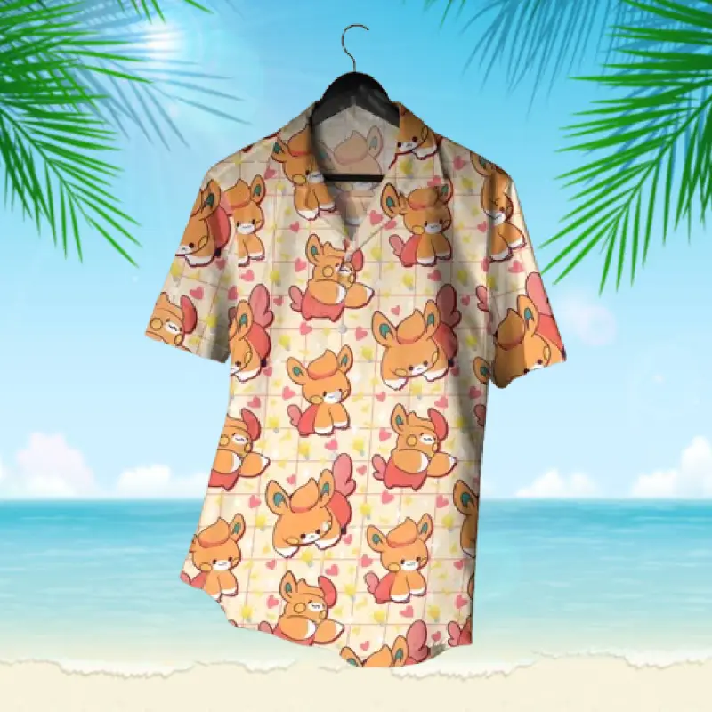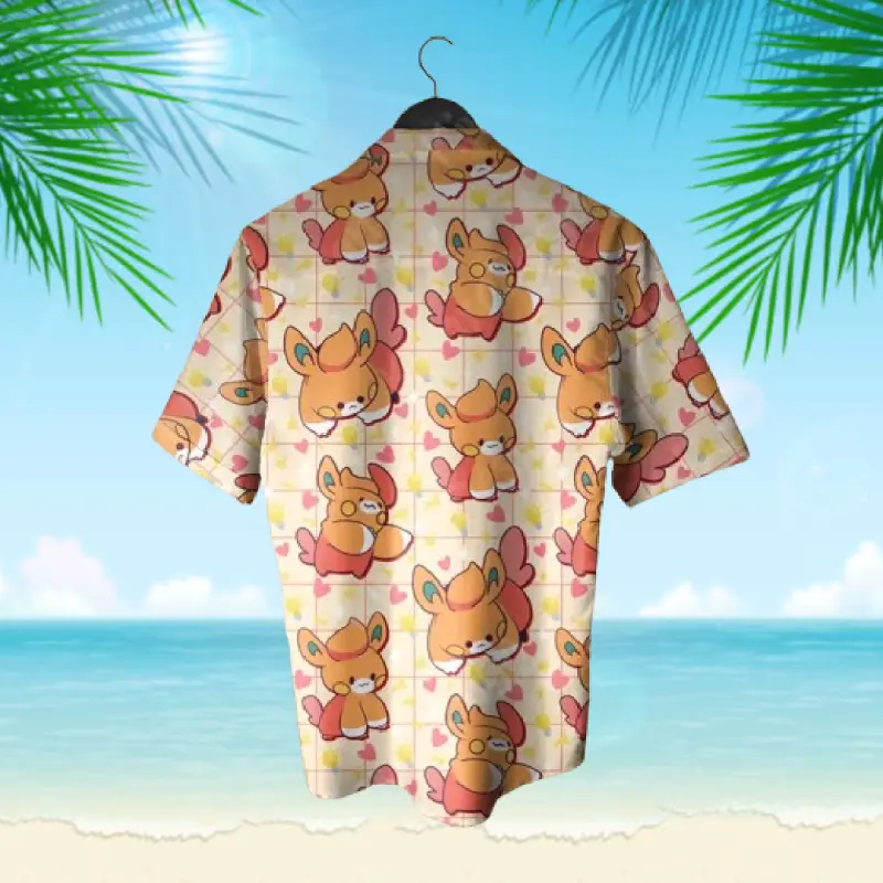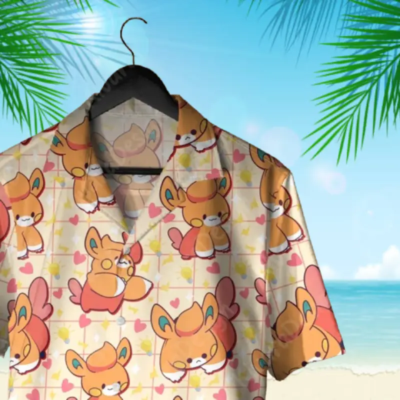 Pawmii Hawaiian Shirt - Summer Beach Aloha Shirt - Anime Manga Gift - Funny Aloha PKM Button Up for Summer Beach Vacation - Anime Inspired Graphic Shirt, 3D Hawaiian Shirt, Tropical Summer Outfit, Gift for Lovers, Family