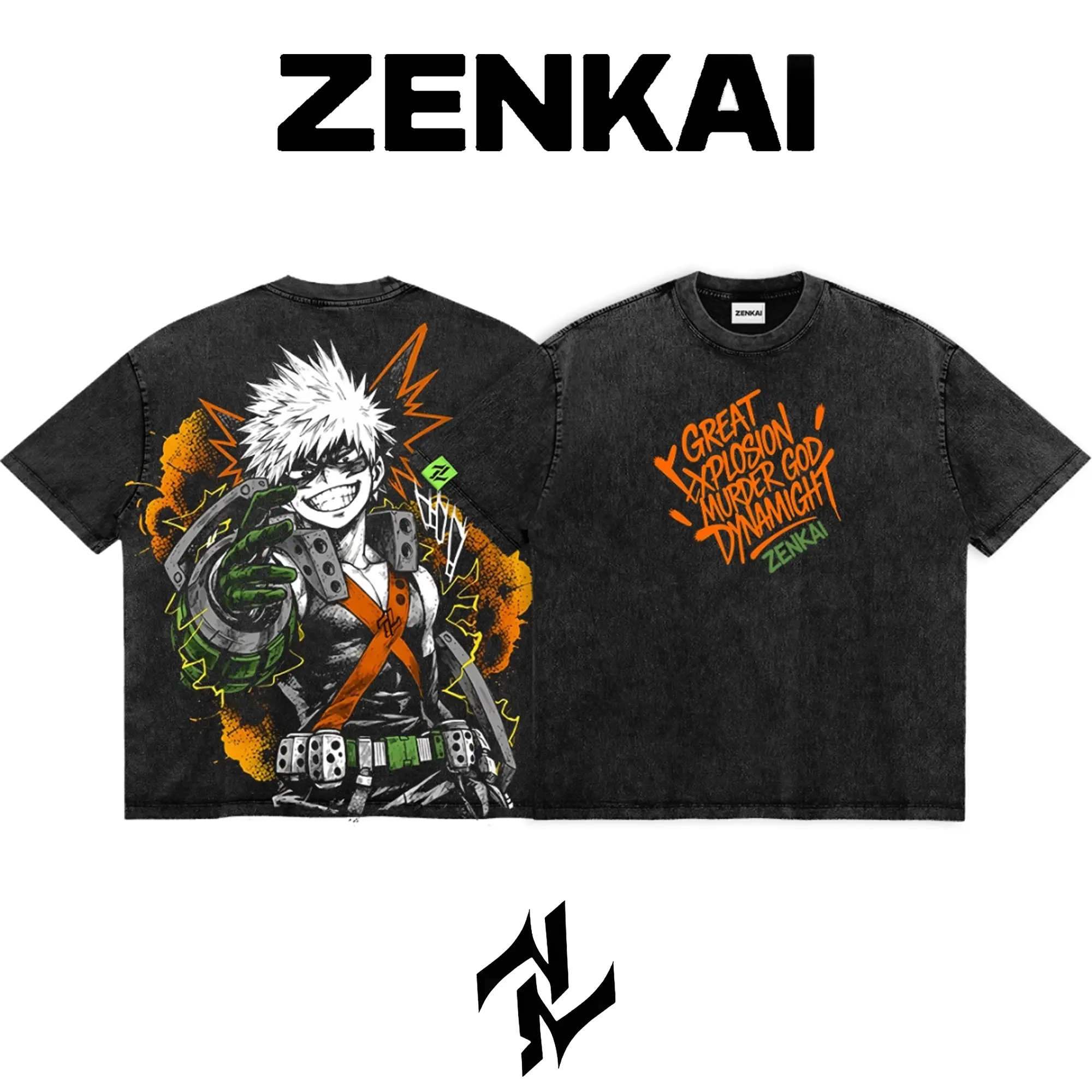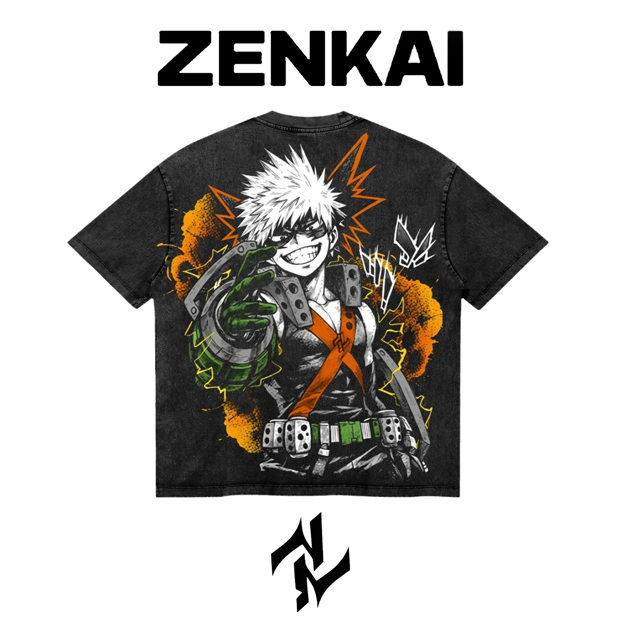 Limited Katsuki Bakugo My Hero Academia Graphic Tee Double Sided Print Oversized Acid-Washed Heavyweight Cotton T-Shirt – Unisex Anime Manga Tee, Perfect Gift for Anime Fans and Lovers Menswear Tops