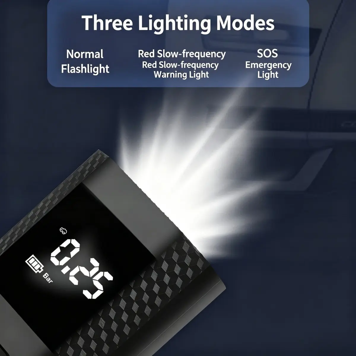 Built-in SOS Emergency Light: 3 lighting modes (steady/SOS/strobe) for night breakdowns, roadside repairs, or outdoor safety.