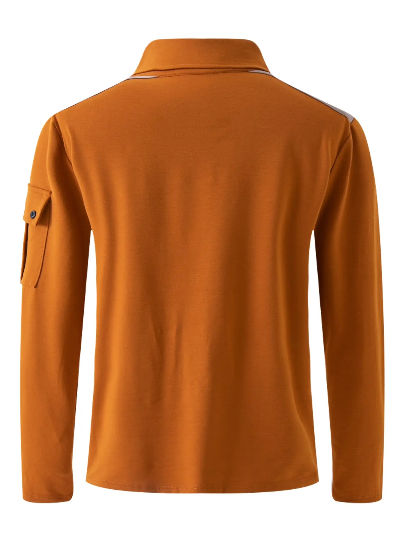 Outdoor Sports Muscle Tee Long Sleeve, Arm Pockets Shoulder Patch Design, Men's Athletic Top, Comfortable and Stylish Clothing