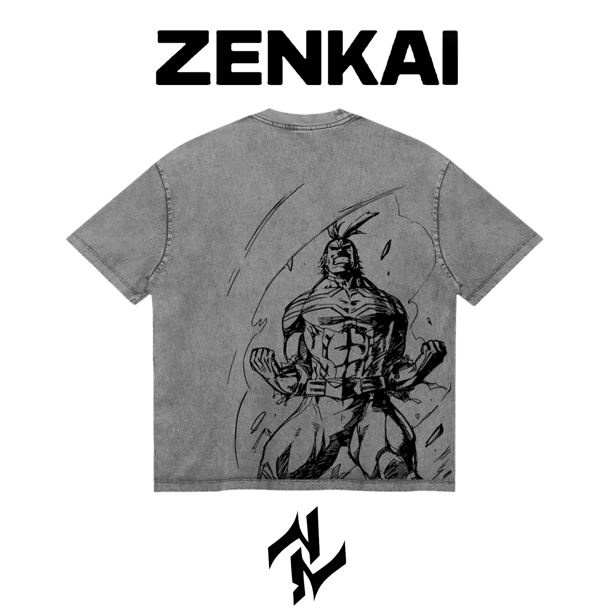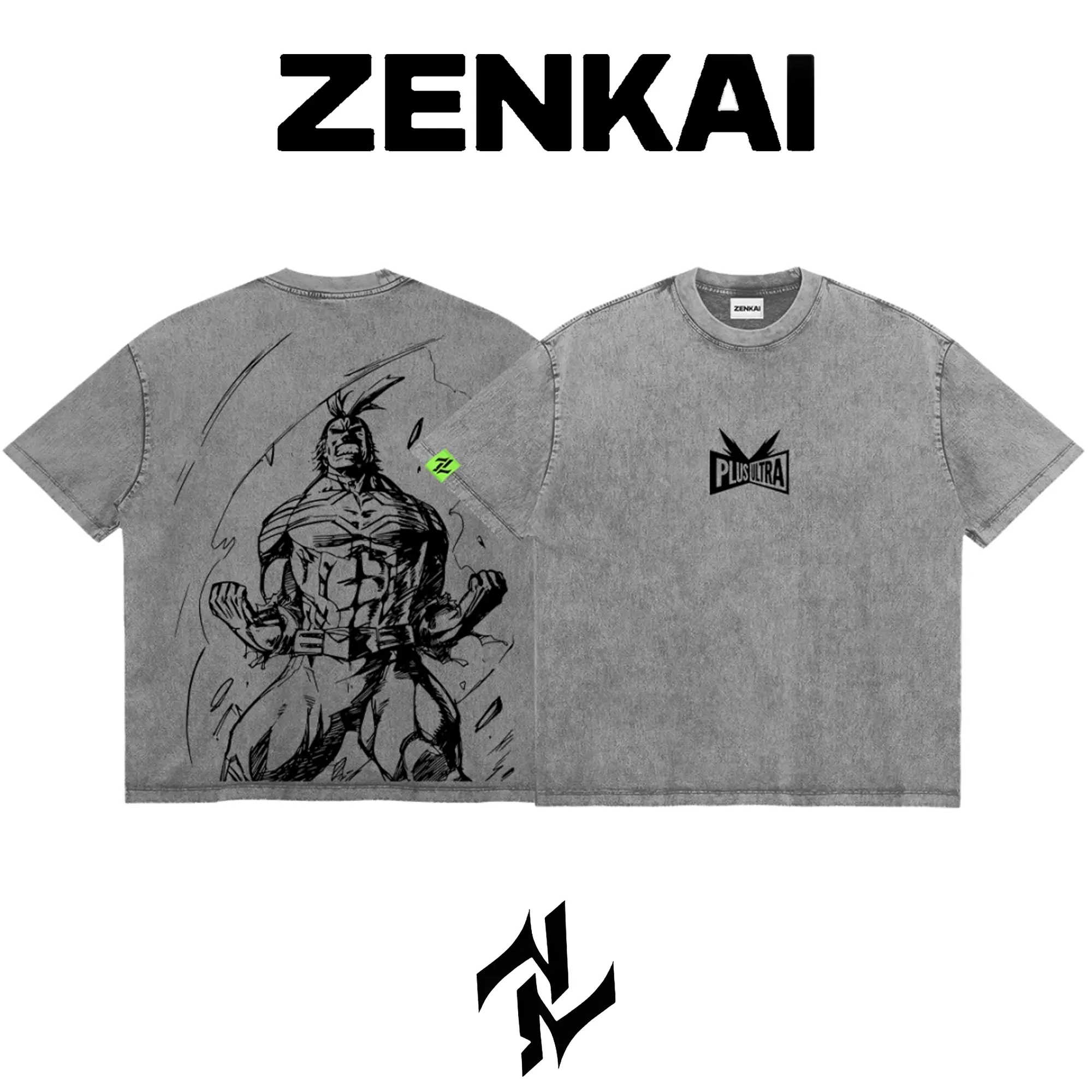 Limited All Might My Hero Academia Graphic Tee Double Sided Print Oversized Acid-Washed Heavyweight Cotton T-Shirt – Unisex Anime Manga Tee, Perfect Gift for Anime Fans and Lovers Menswear Tops