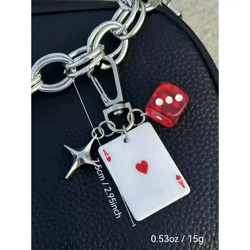 Poker Dice Keychain Set with Star Pendant, Club Diamond Alloy Metal Keychain for Bags, Cartoon Number Theme Jewelry, Car Key Chain Accessories