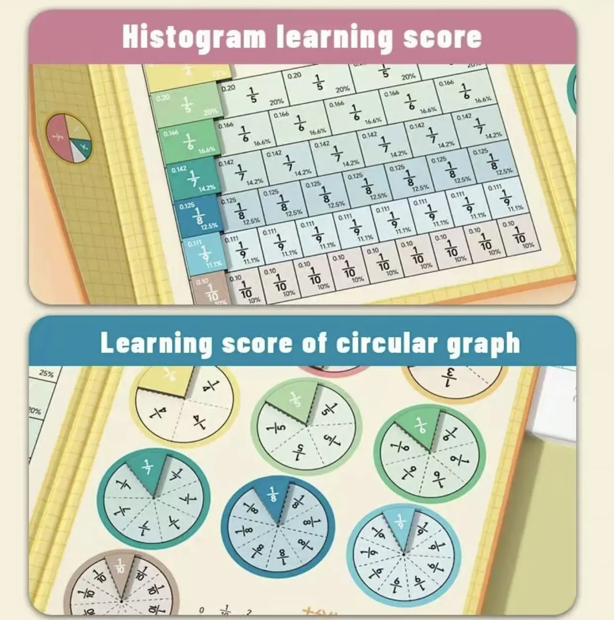 This educational puzzle is designed for kids in elementary school and preschool. It serves as a fun and effective tool for learning fractions. Perfect for teachers and parents looking to enhance math skills in young children.