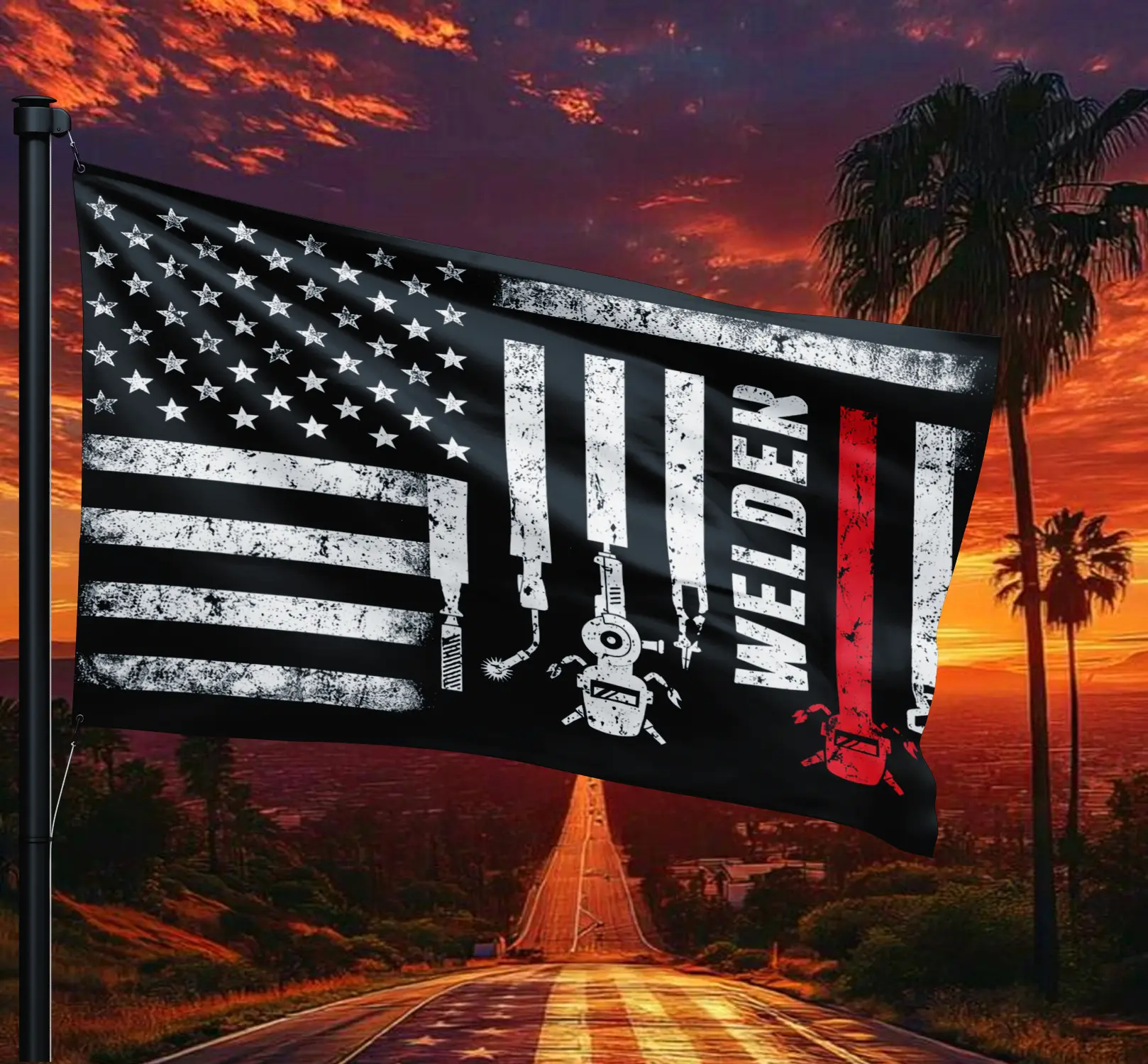 5. Patriotic American Flag Welding Tools USA Design Outdoor Yard Garden Flag Double Sided Weather Resistant