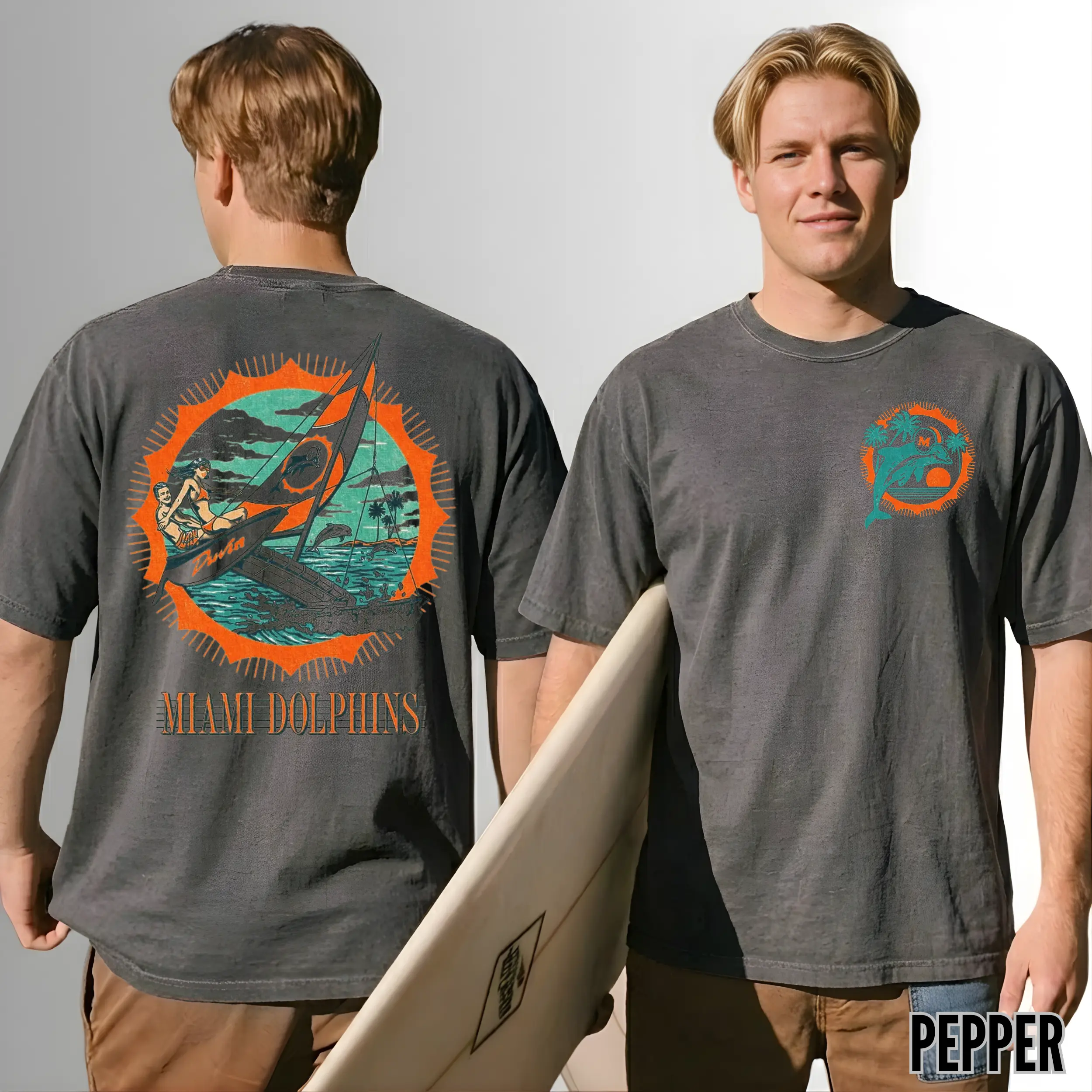 Vintage Miiiami Dol Graphic Tee, Retro Football Fan Shirt, 90s Aesthetic Beach Vibes T-Shirt, Unisex Oversized Sportswear, Premium Ivory Heavyweight Cotton Top Classic
