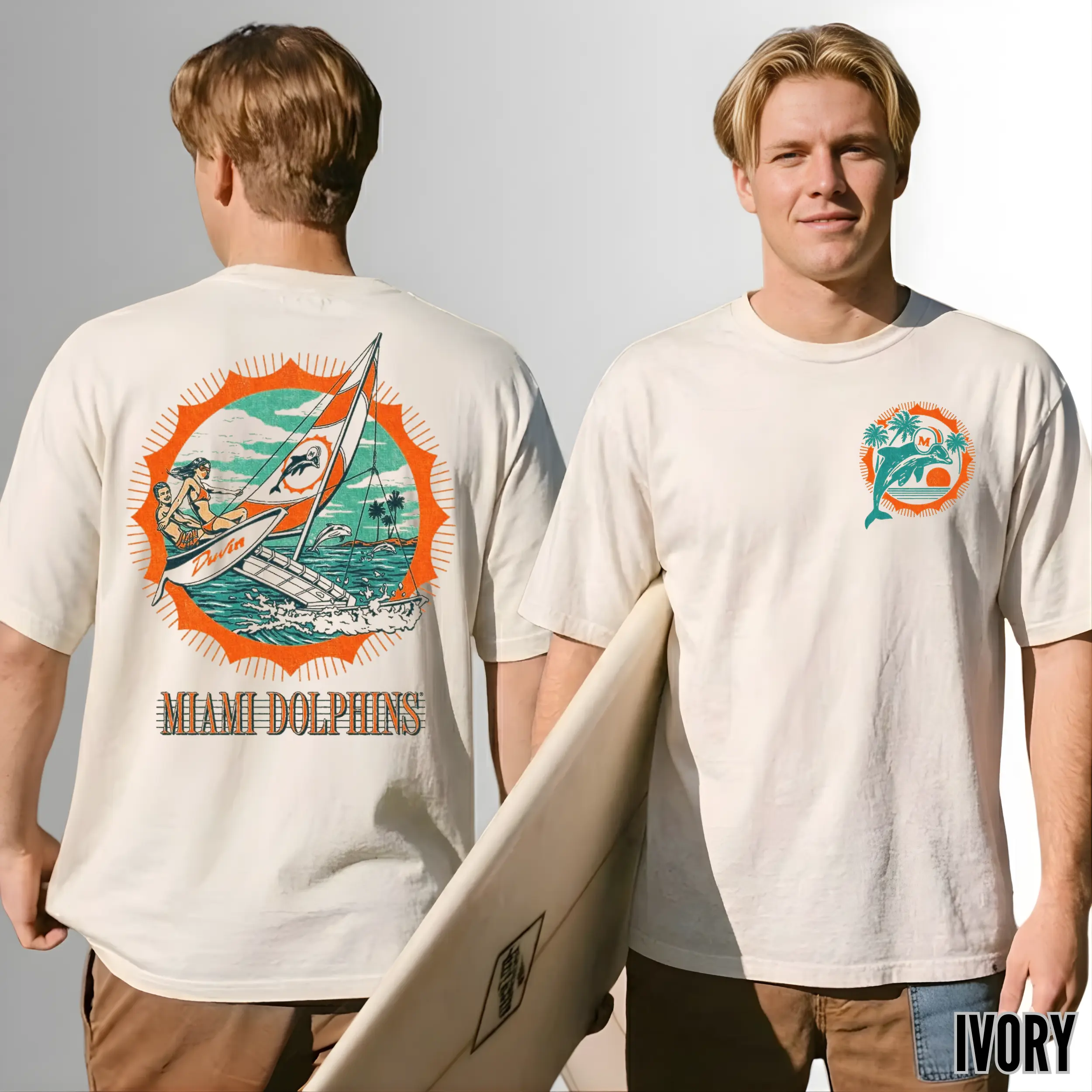 5. Vintage Miiiami Dol Graphic Tee, Retro Football Fan Shirt, 90s Aesthetic Beach Vibes T-Shirt, Unisex Oversized Sportswear, Premium Ivory Heavyweight Cotton Top Classic