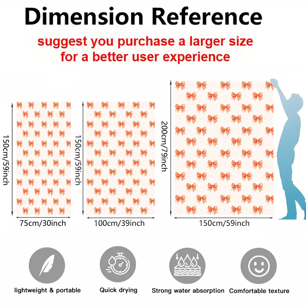 Cute Bow Knot Beach Towel, Fresh Pastel Ribbon Design Microfiber Quick Dry Towel, Exclusive Gift for Girls & Women