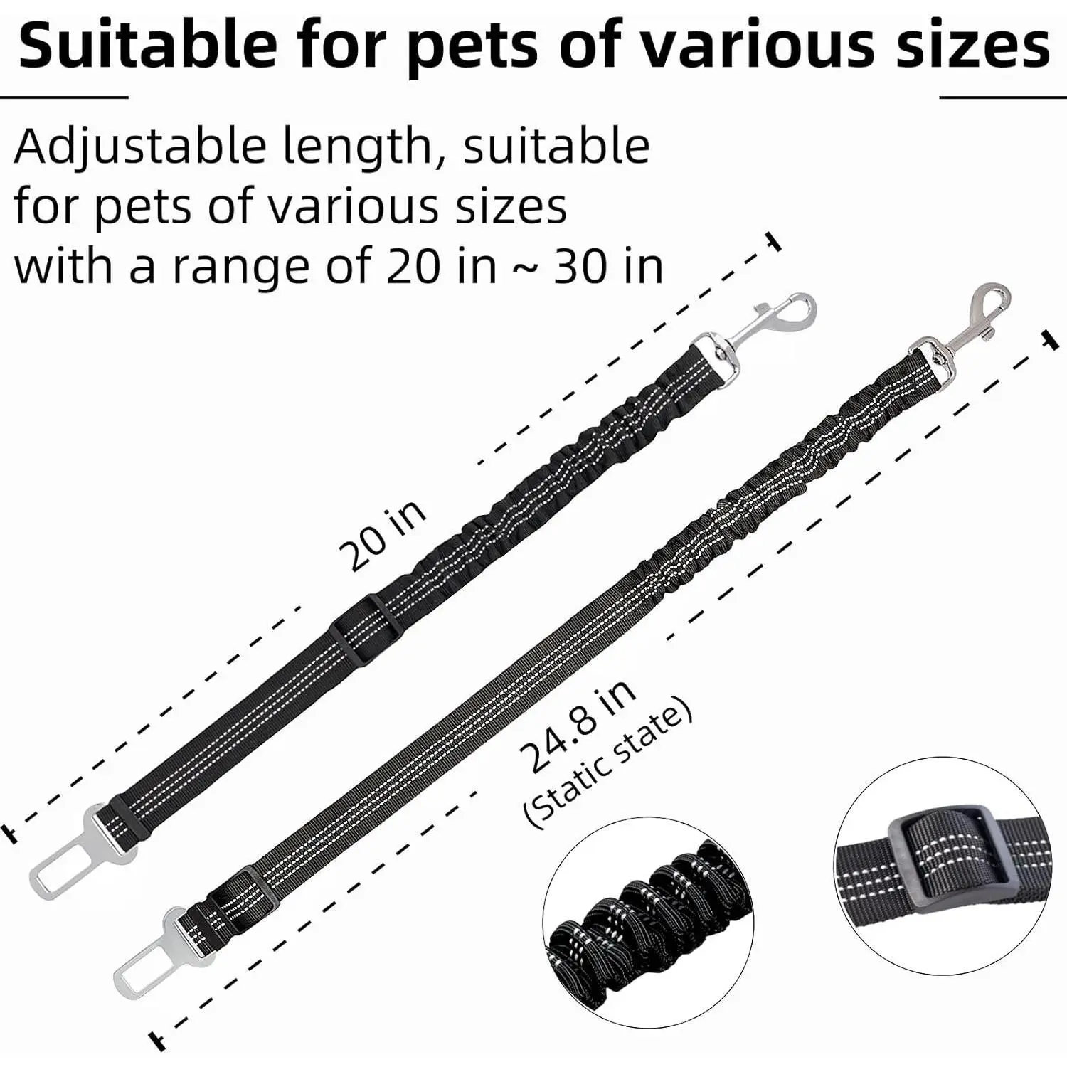 Adjustable between 20 and 24.8 inches, this seat belt provides a custom fit for your dog. The telescopic design extends to 30 inches, providing additional movement freedom while keeping your pet safe.