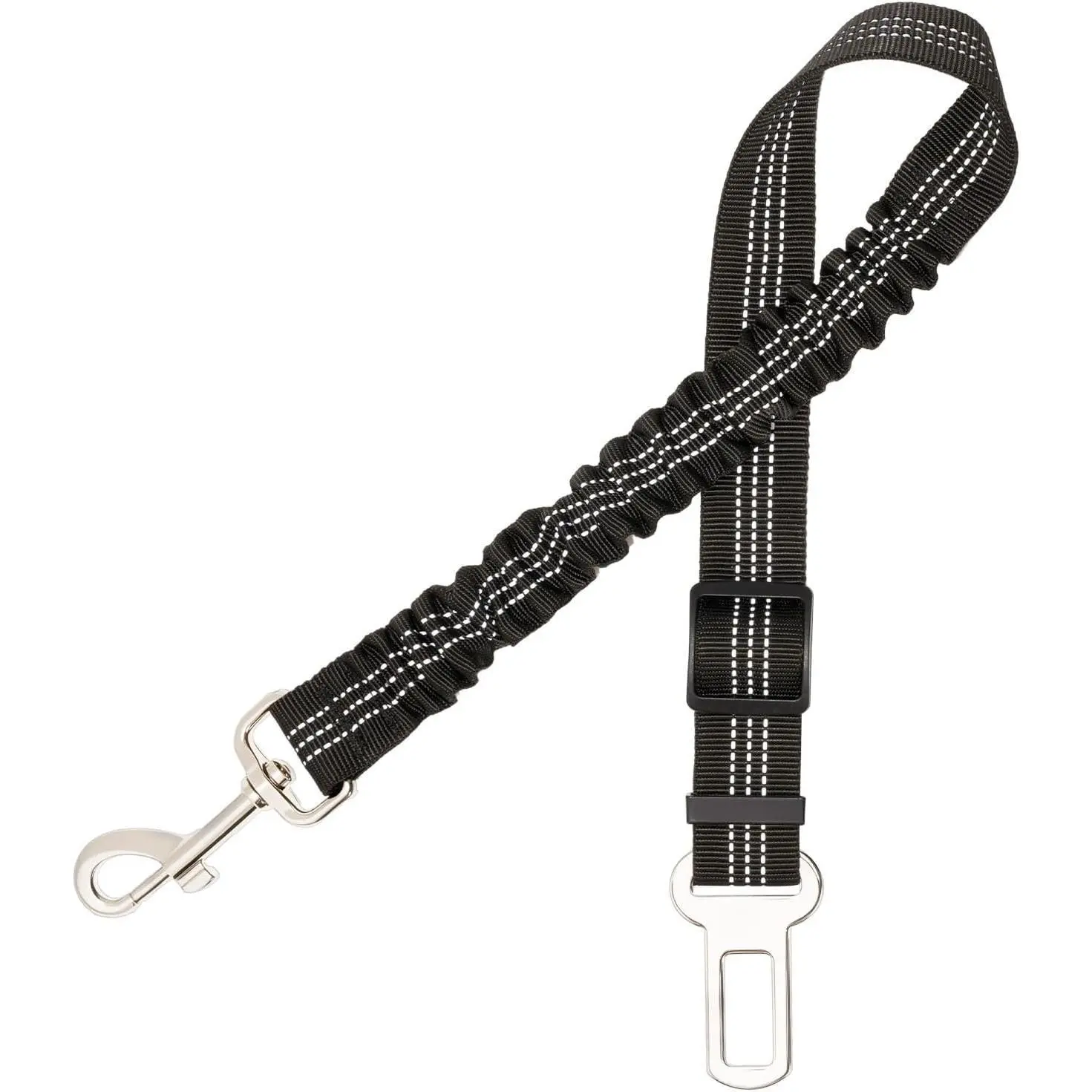 Made from high-strength nylon webbing, this pet seat belt offers exceptional durability and security. The reflective stitching enhances visibility at night, ensuring your dog is safe even during late-night drives.