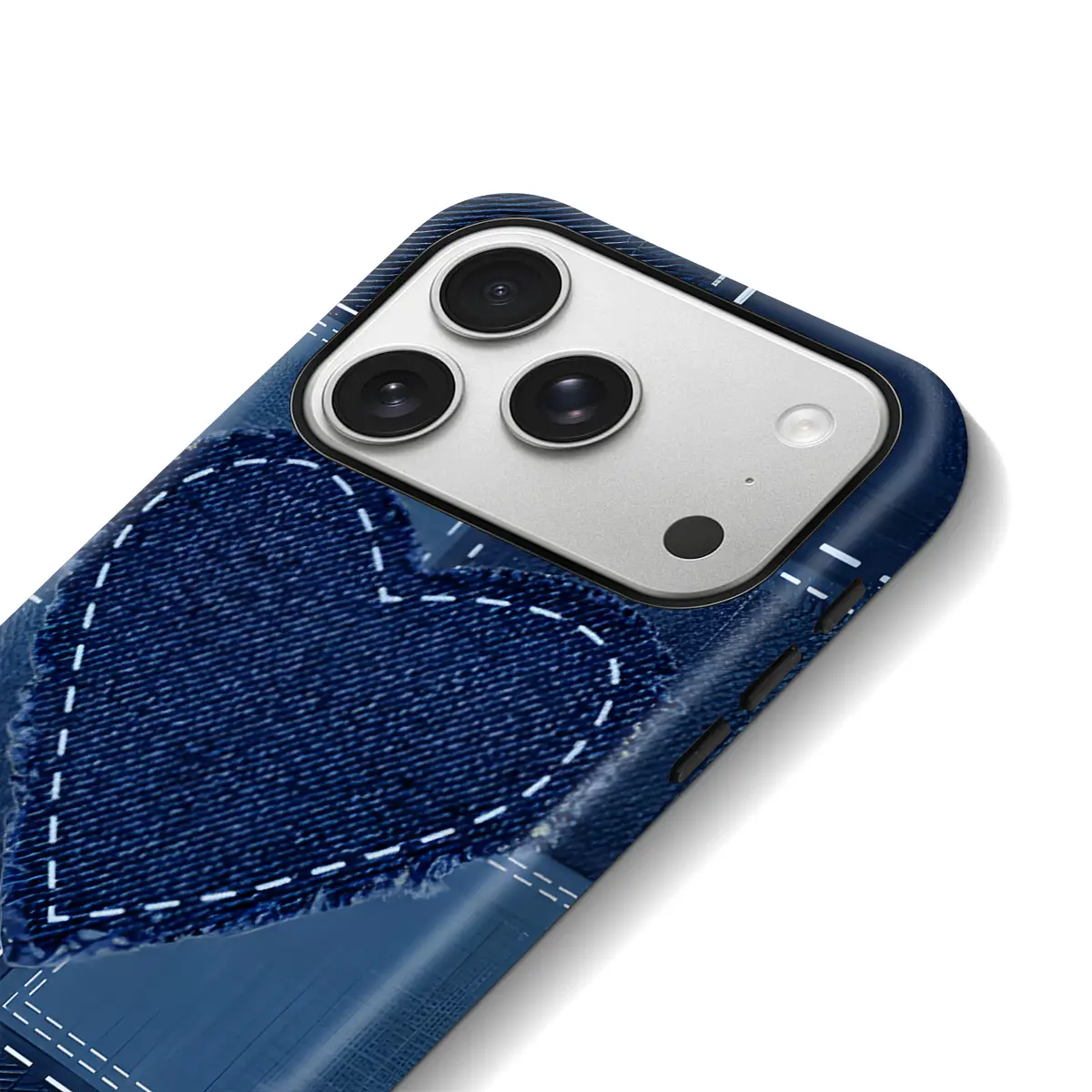 Denim Heart Patchwork Design Phone Case Drop Proof for iPhone 17 Pro Max/16 Pro Max /15Pro Max 15/14/13/12 & Samsung S26 /S25Ultra Trendy ins Style