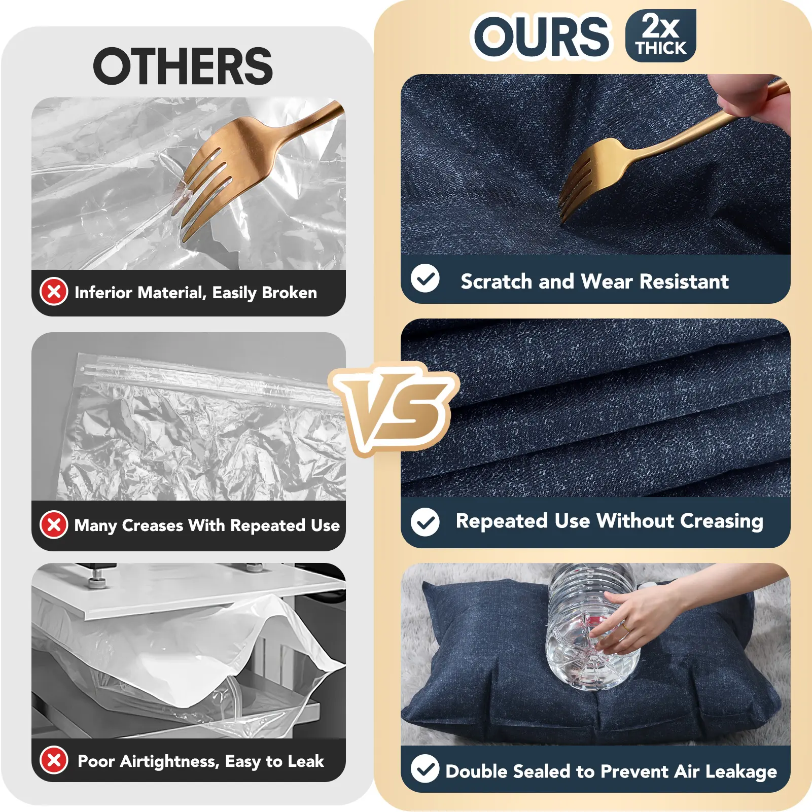 Our vacuum seal bags for clothing travel are designed for durability. The hand pump included makes sealing easy. Perfect for all your travel and home storage needs. Save space and protect your items with these essential bags.
