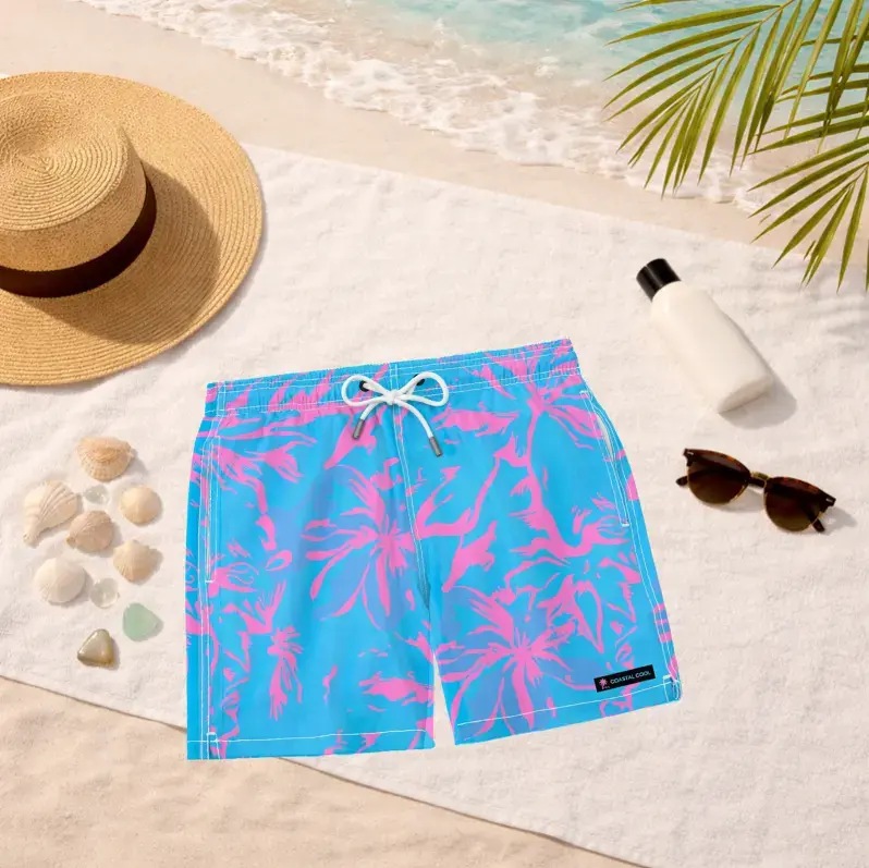 Vacation Tropical Palm Matching Swimwear 2026, Women's String Bikini & Men's Swim Trunks, Blue Pink Couple Swimsuits, Summer Beachwear, Honeymoon Vacation Outfit