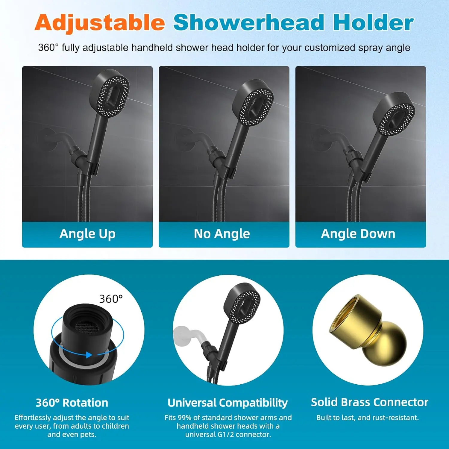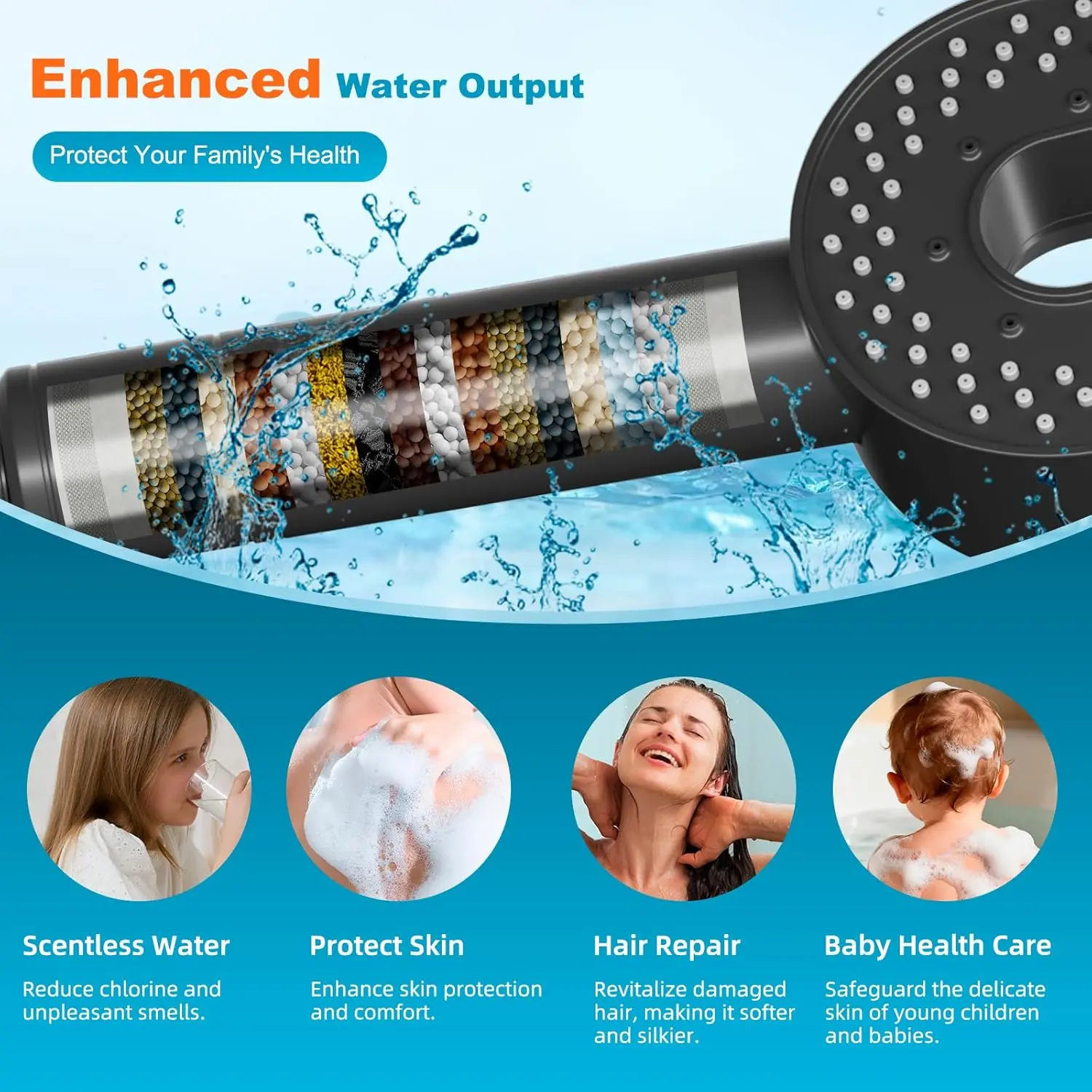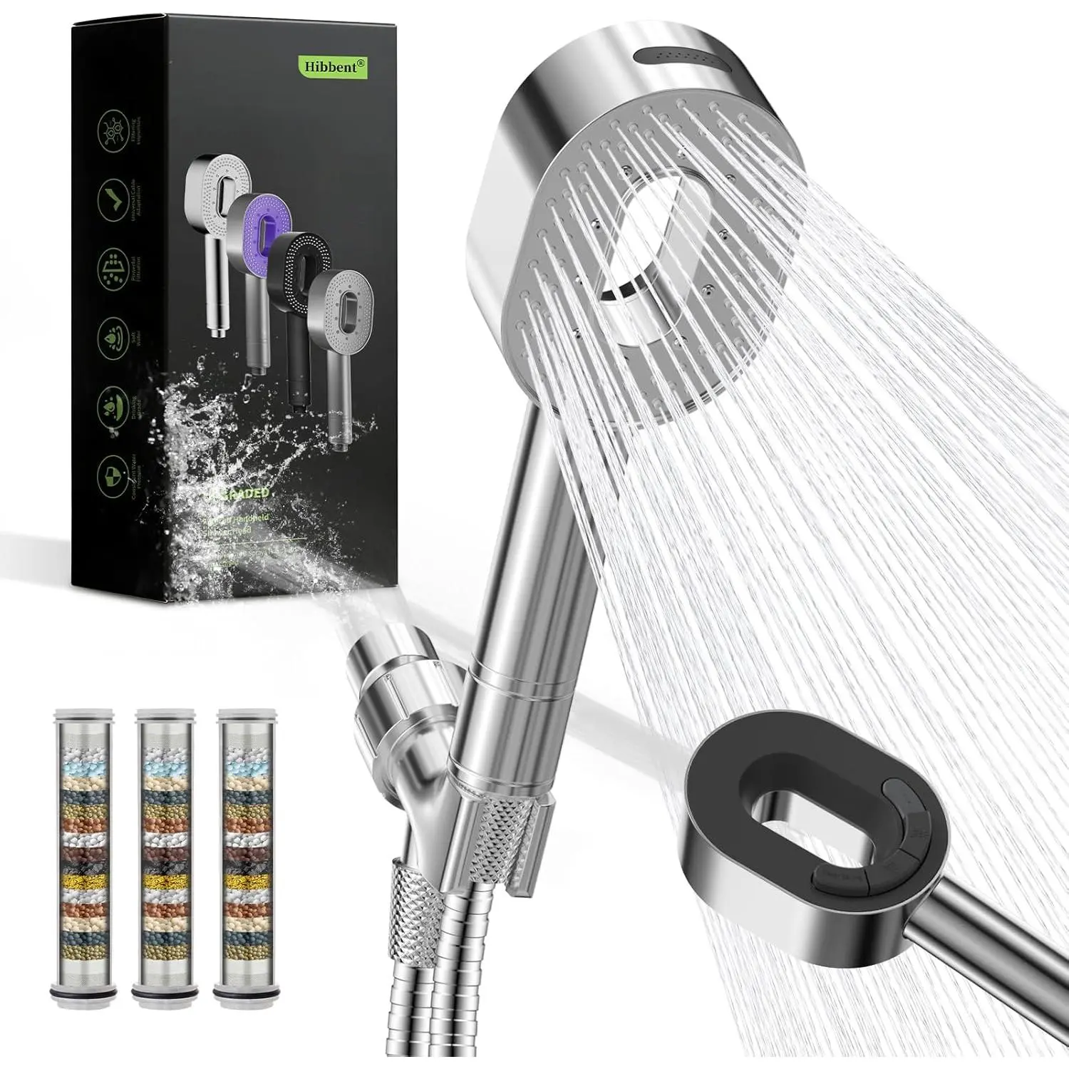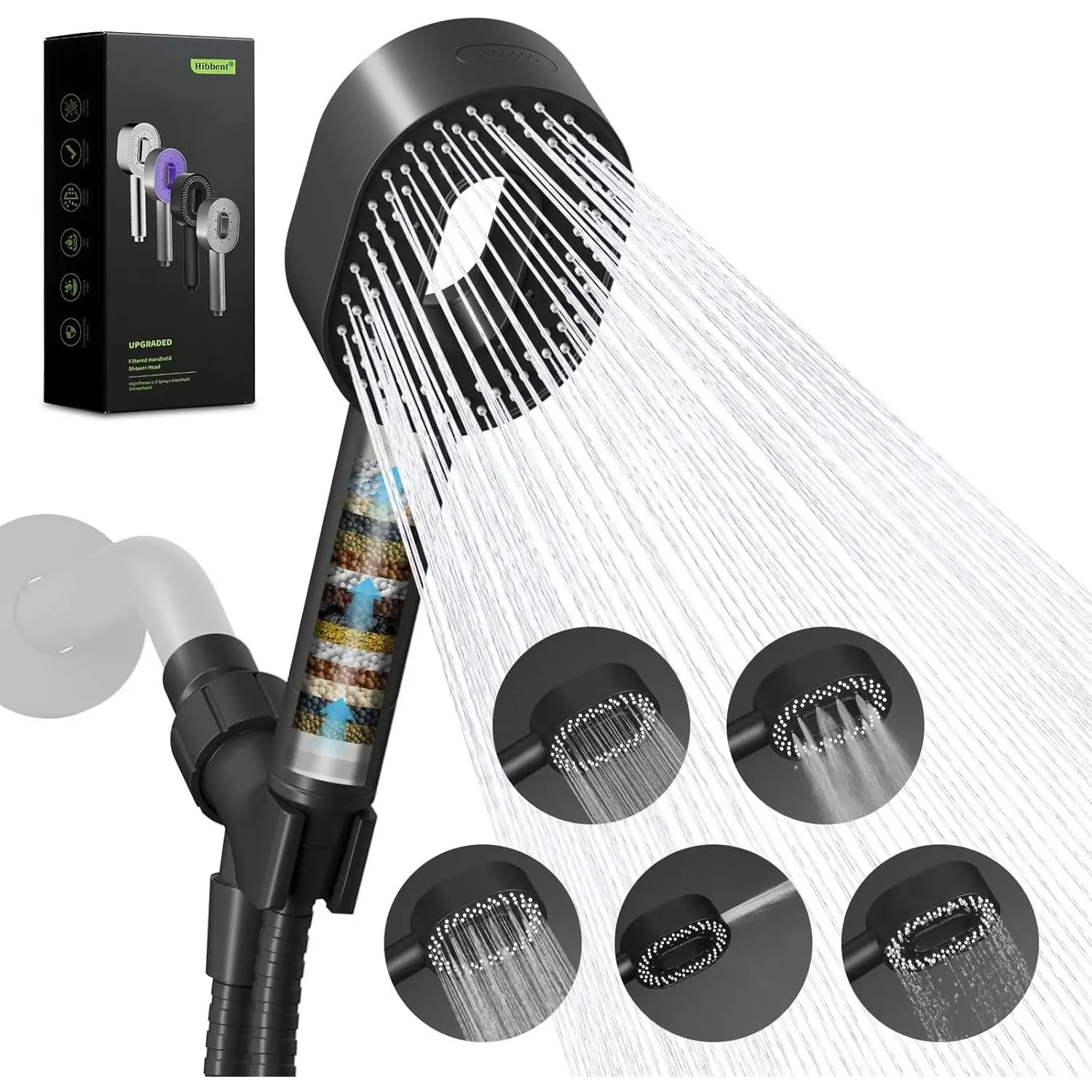 Filtered Showerhead with handheld, High Pressure 5 Sprays Handheld Shower Head with Brass Holder & 71" Metal Hose, Water Softener for Hard Water-Remove Chlorine, Reduces Dry Itchy Skin, Black