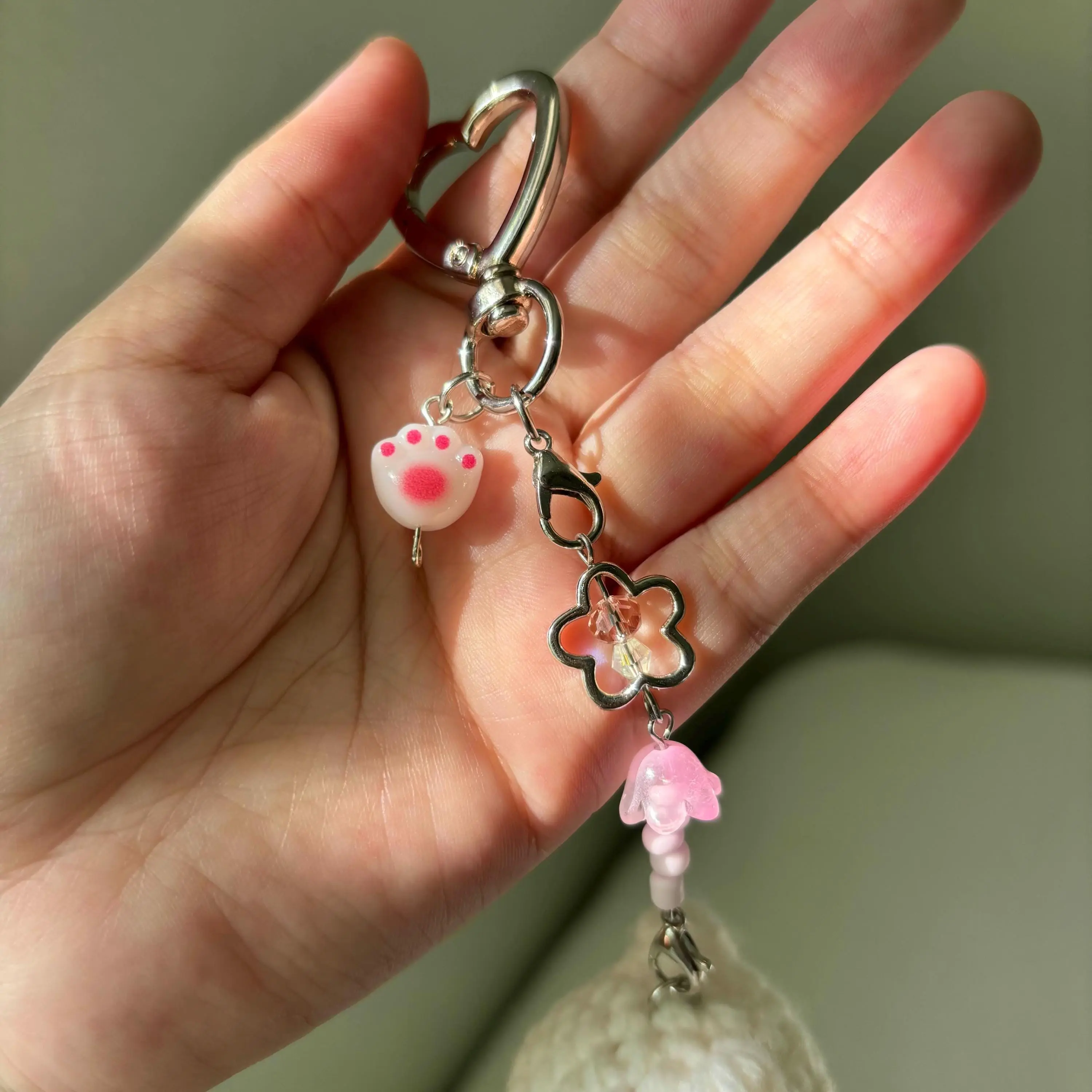 Crochet Cherry Blossom Keychain