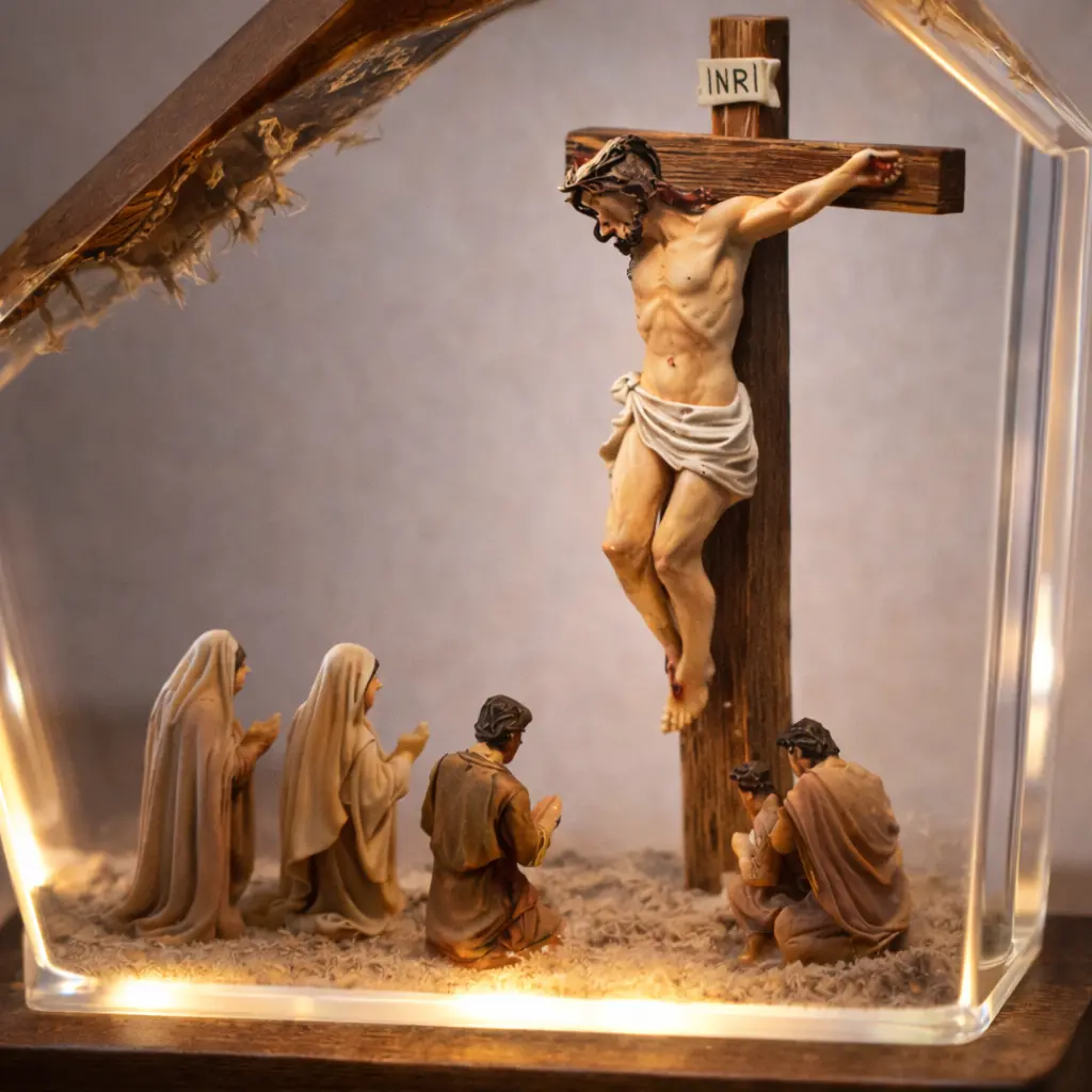 Bring a sense of peace and spiritual reflection into your space with this beautifully crafted resin lamp. Designed with a detailed crucifix scene encased in crystal-clear resin, this piece is more than just lighting — it’s a meaningful symbol of faith and devotion.