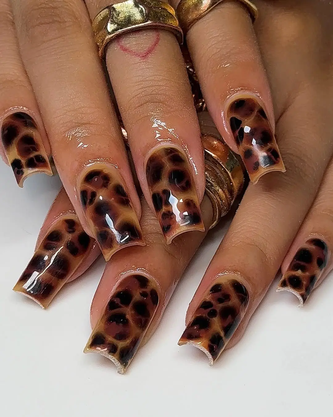 Brown Leopard Print Press On Nails, Neutral Animal Pattern Nail Set, Glossy Handmade Nails, Tortoiseshell Reusable Statement Nails