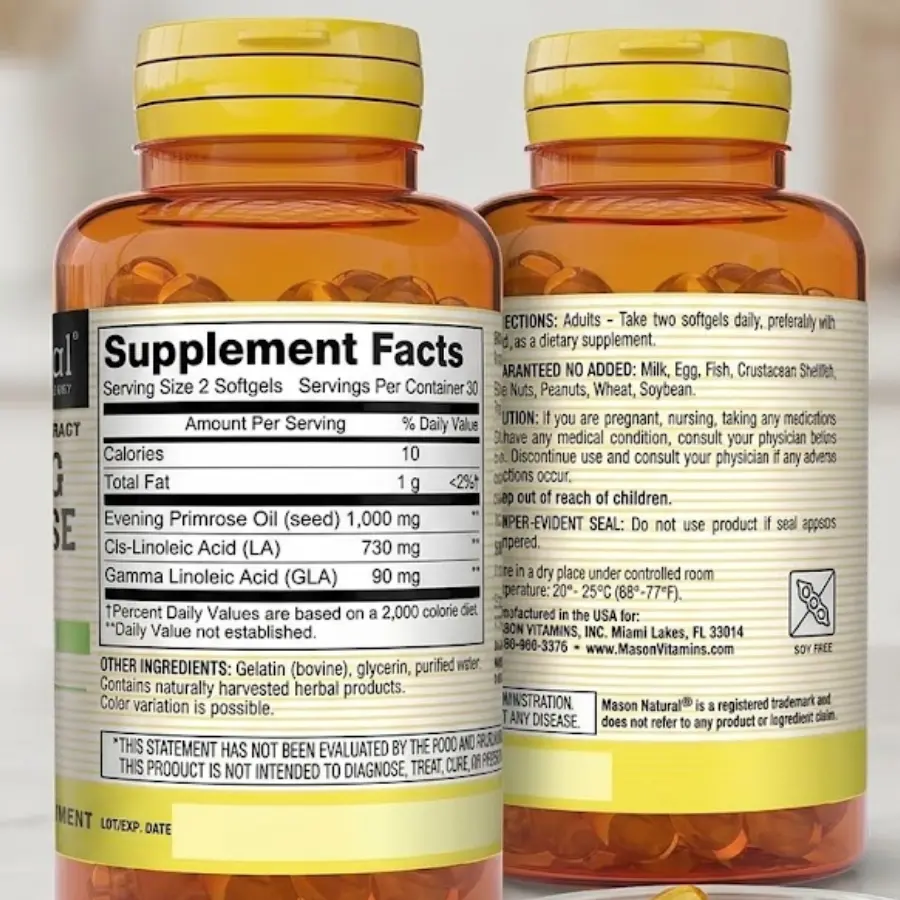 ·Concentrated Dose: Each softgel provides 1000 mg of pure evening primrose seed oil, including 730 mg of LA and 90 mg of GLA.