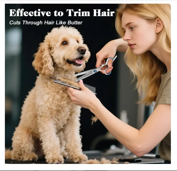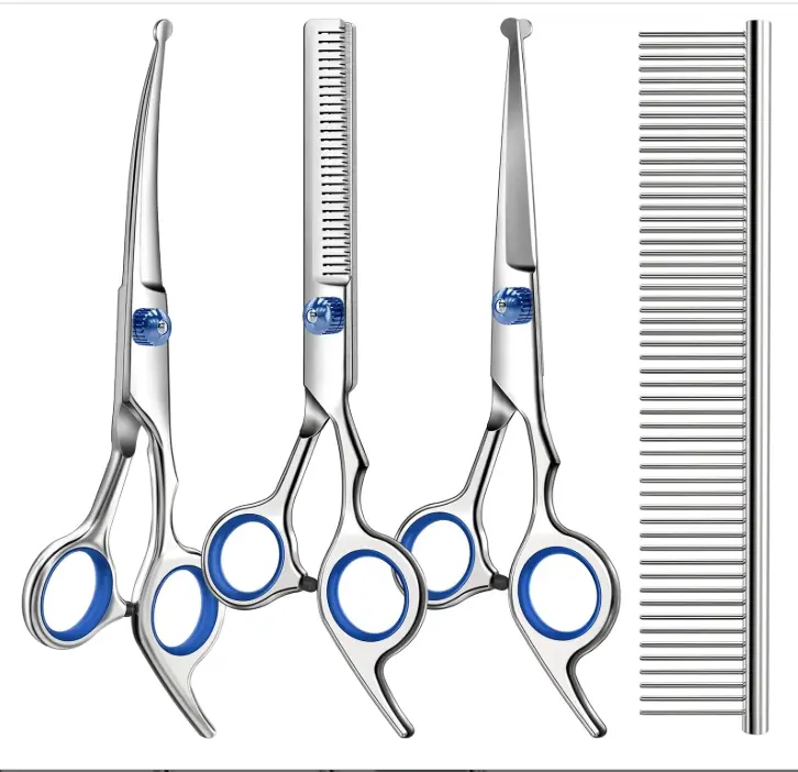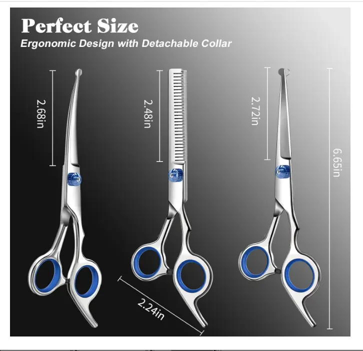 ·【Professional Dog Grooming Scissors】This dog grooming kit includes 1* thinning shear, 1*curved scissor, 1* straight scissor and 1* dog comb. 6.5 Inches professional dog grooming shears are perfect for beginners and professionals. Let you, as the groomer, give your furry companion a shiny, healthy coat, Must-Have Dog Grooming Supplies for New Owners - The Best Dog Gifts - Merry Christmas