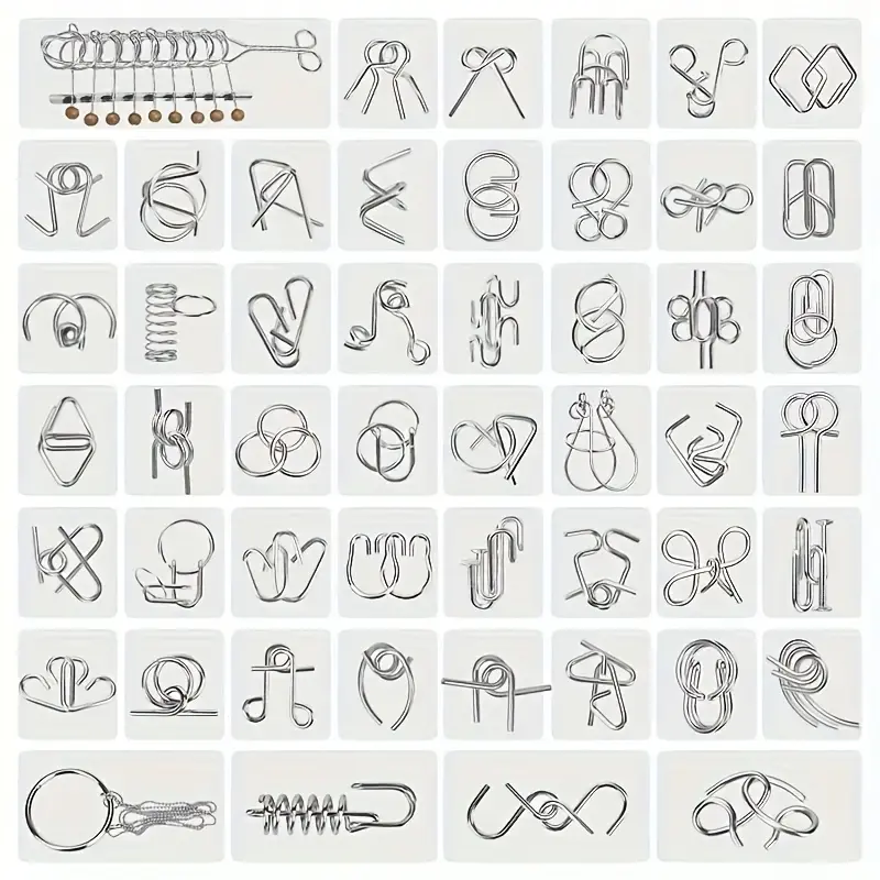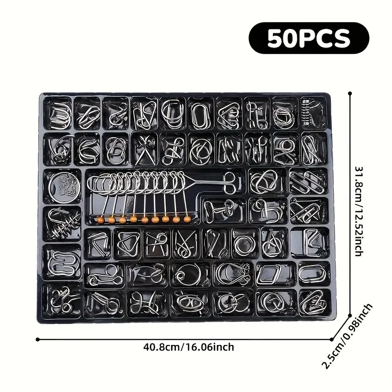 ✨ 50pcs Metal Intelligence Unlock Puzzle is a complete set of Luban lock, hole, and nine chain puzzles. Ideal for birthdays, Christmas, Thanksgiving, Halloween, and New Year gifts. This set offers a unique challenge for puzzle enthusiasts. Each piece is designed to test your intelligence and problem-solving skills.