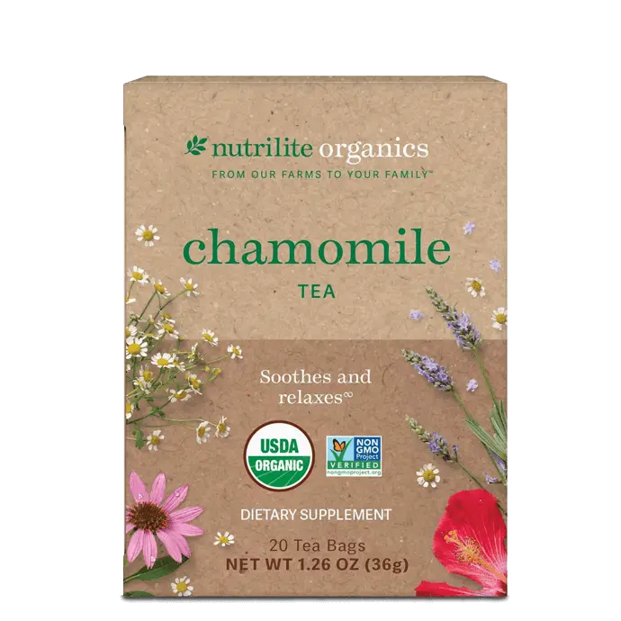 Nutrilite Organics Chamomile Tea brings together a soothing blend of certified organic herbs including chamomile, lavender, hibiscus, echinacea, and catnip†. Carefully sourced from Nutrilite organic farms, this tea is designed to support relaxation and help you enjoy a more balanced daily routine.