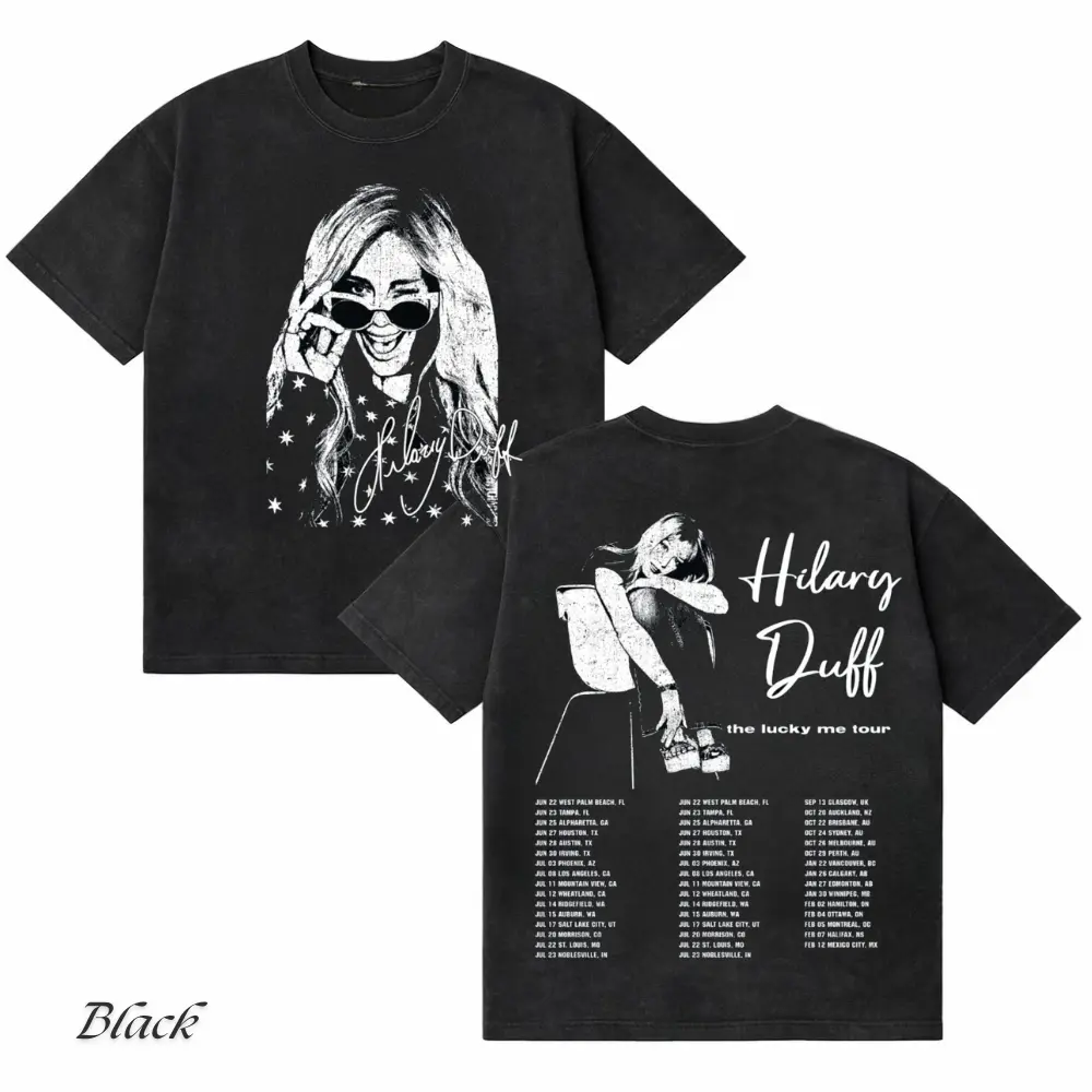 Y2K vibes 💫 Throwback pop energy with a vintage tour look – perfect for real Hilary Duff fans & everyday fits.