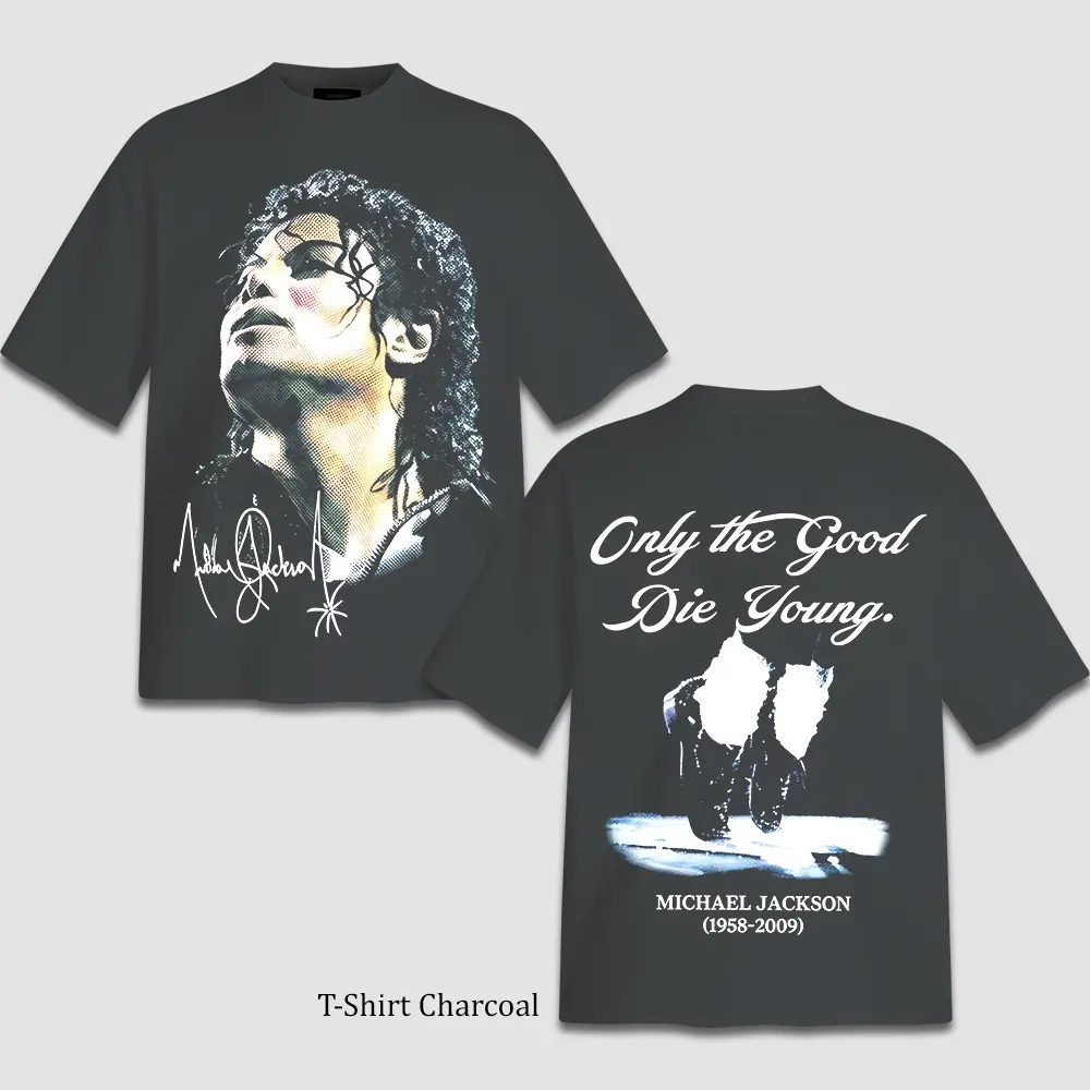 Retro 90s Michael Jackson Only the Good Die Young Two Sided T-Shirt, Vintage King of Pop Music Graphic, Oversized Heavyweight Tee for Men Women, Old School Hip Hop Apparel, Nostalgic Concert Dangerous World Tour Fan Gift