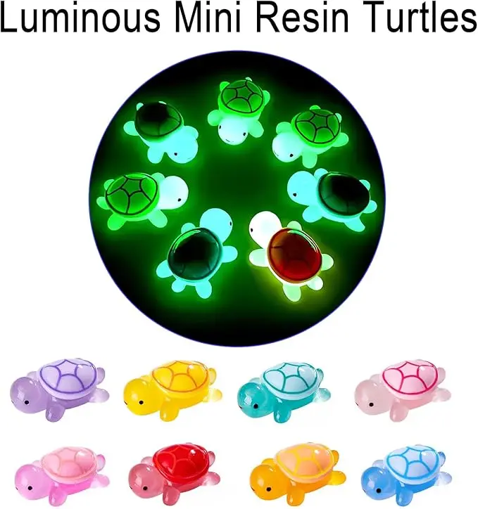 ·30PCS Luminous Mini Resin Turtles: Add a touch of marine charm to your space! These mini turtles are perfect for various decorative purposes. They come in random colors, ensuring a unique and unexpected look. Ideal for gardens, parties, and miniature landscapes.