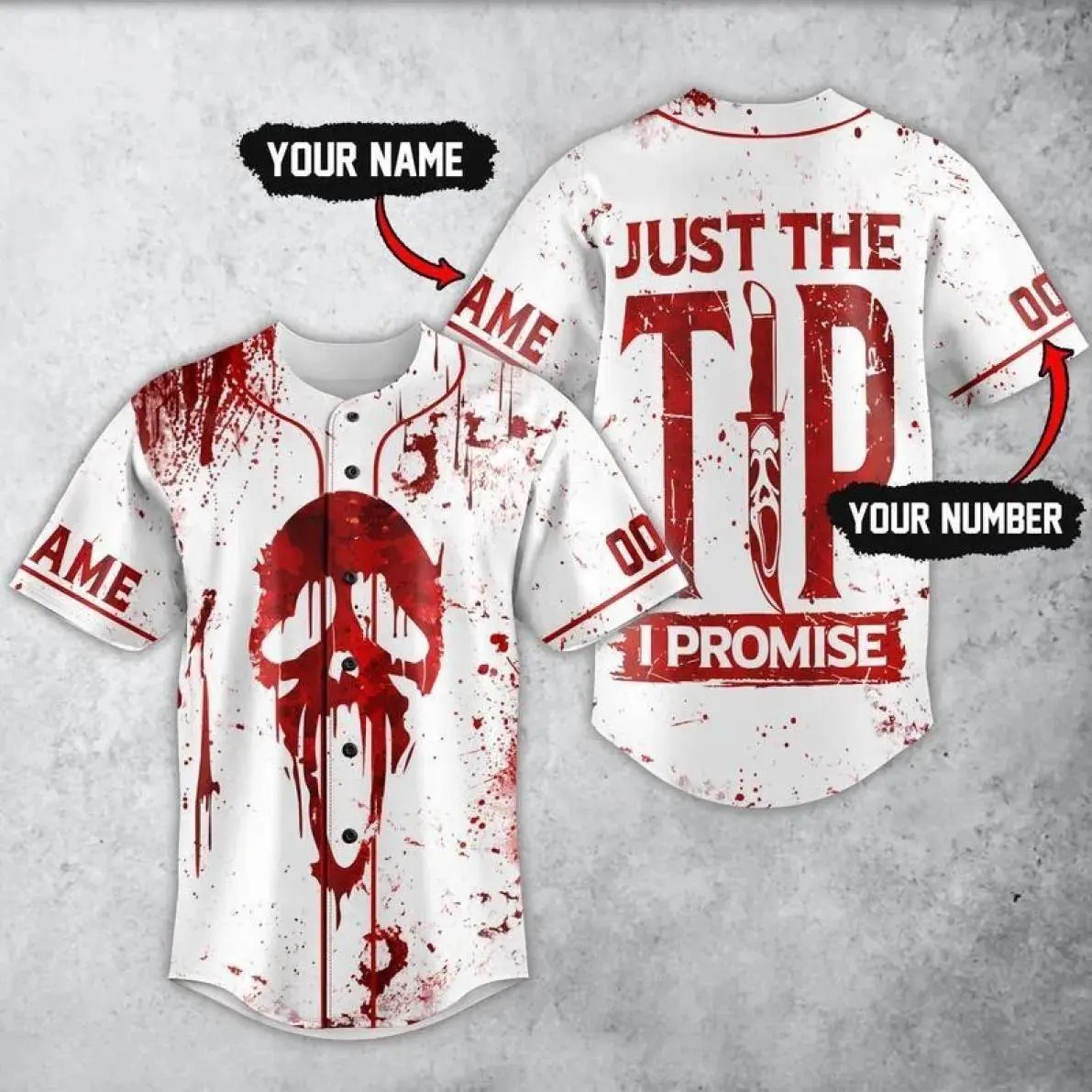 Ghost Face Inspired Baseball Jersey Custom Name – Funny Horror Meme Just The Tip Shirt