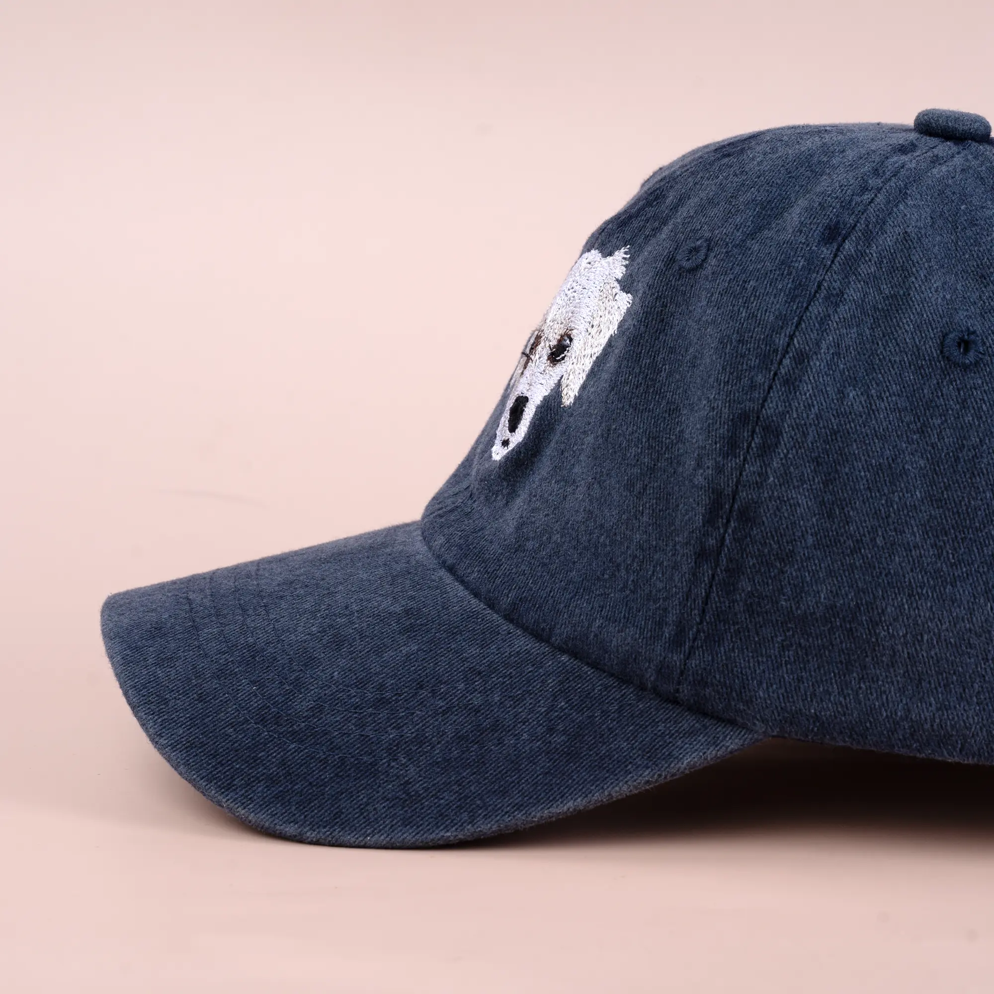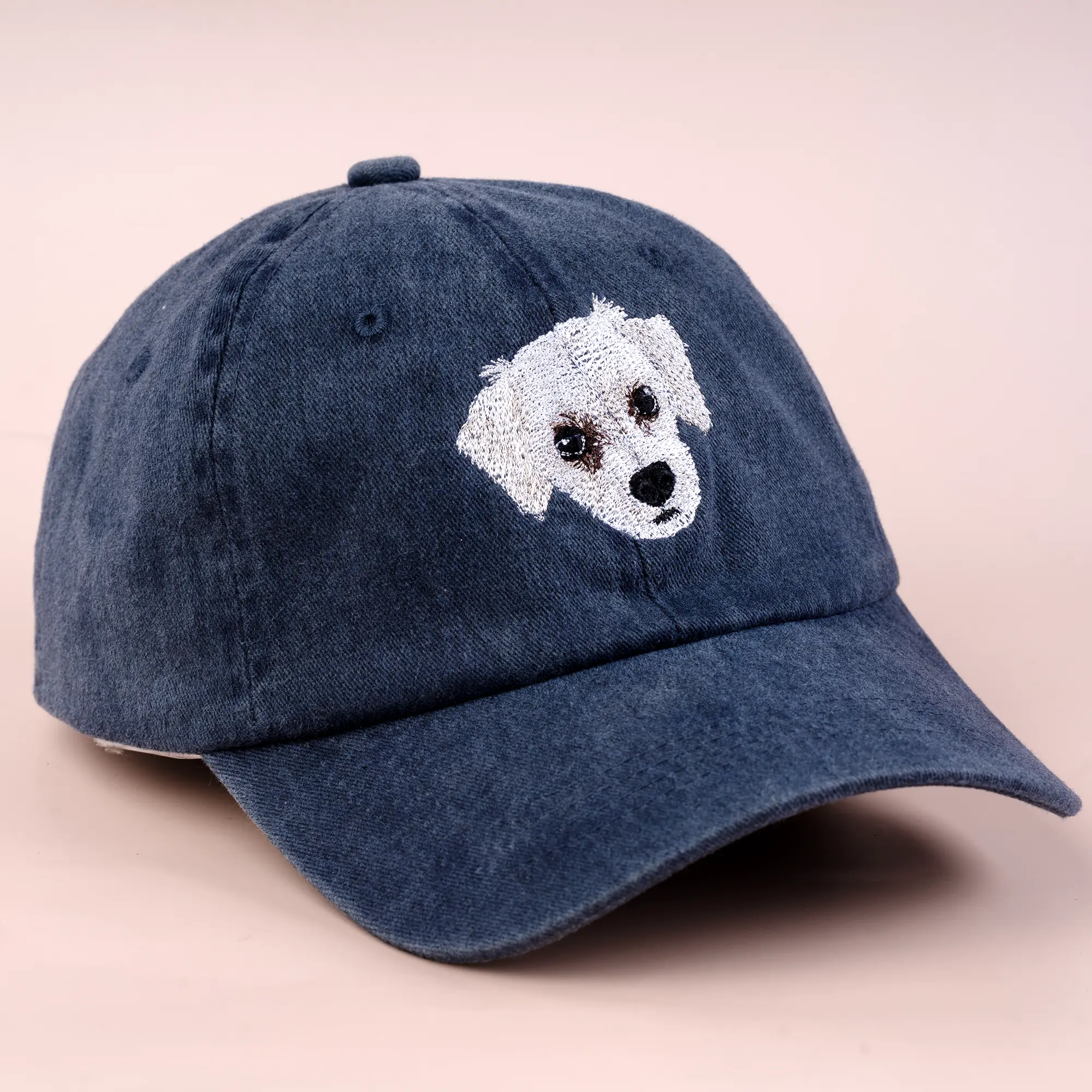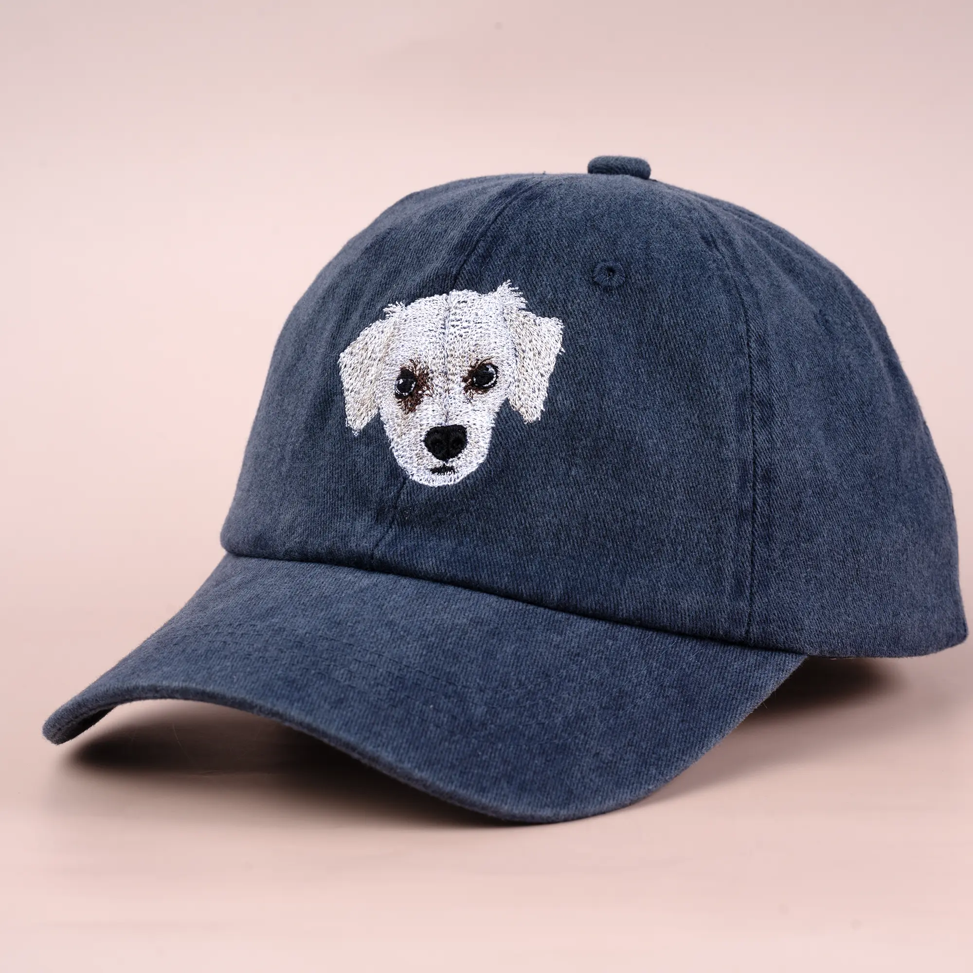 Our custom embroidered pet hats use high-definition embroidery to beautifully capture your pet’s adorable face. Made from 100% cotton with an adjustable strap, these hats are designed for comfort and everyday wear.