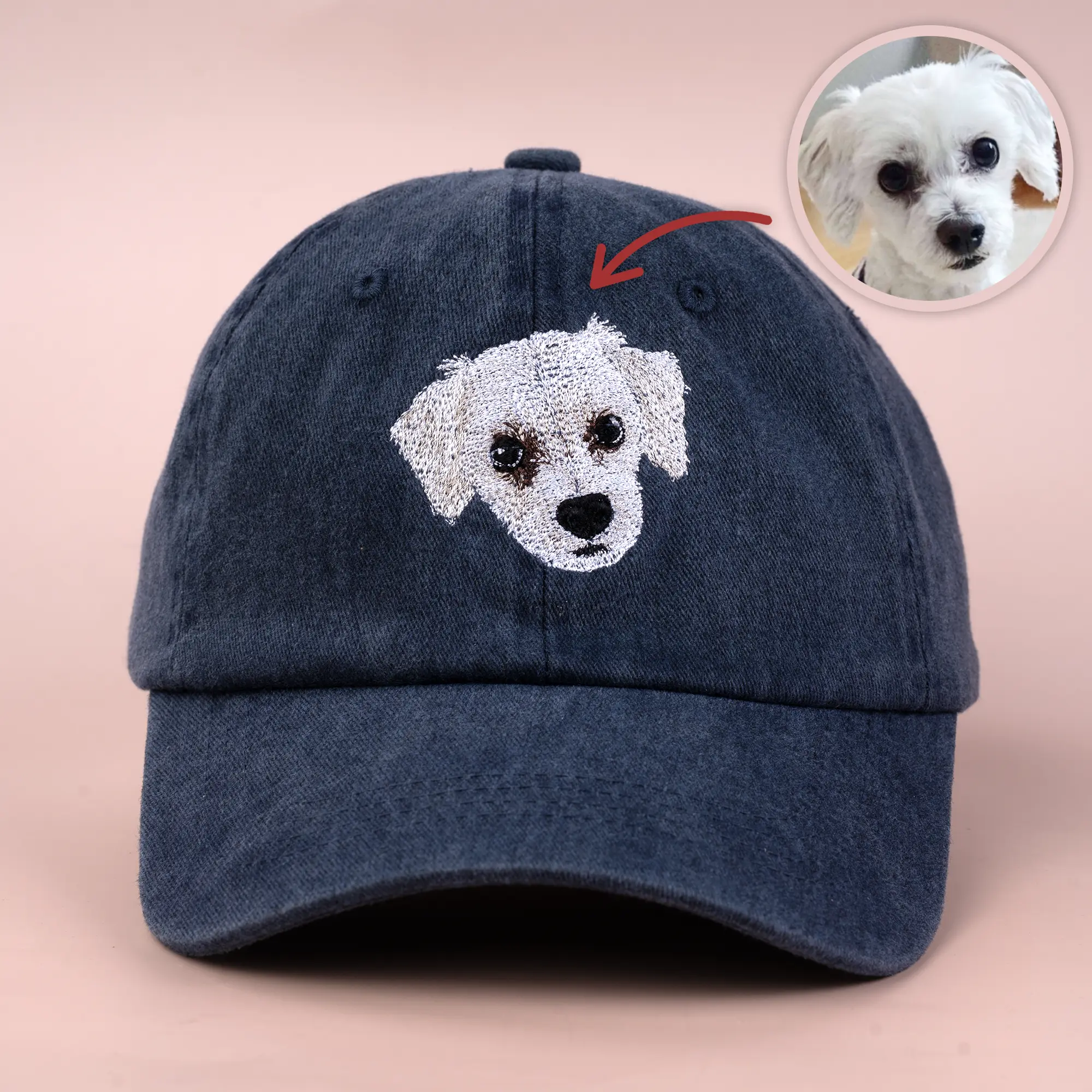 Turn the precious memory of your beloved pet into a one-of-a-kind embroidered cap you can wear every day.