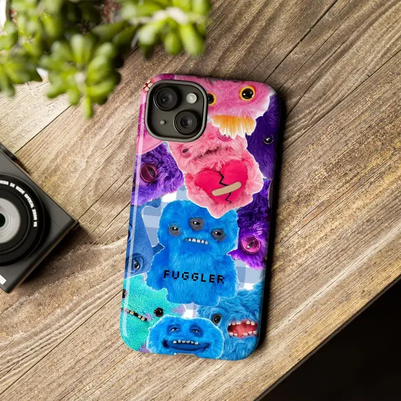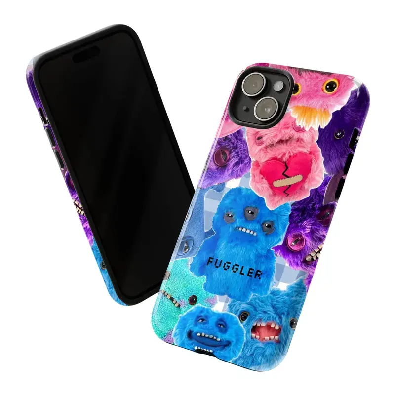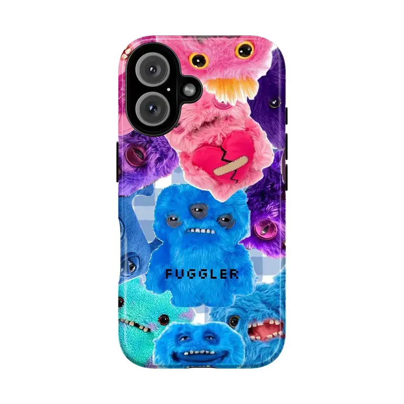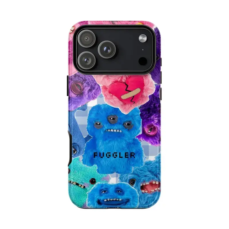 Fuggler Monster Plush Phone Case, Blue Pink Teal Purple Crooked Teeth Multi-Eyed Creatures Whimsical Toybox Vibes, Play Now Aesthetic Gift, iPhone 16 15 14 13 12 11 Pro Max