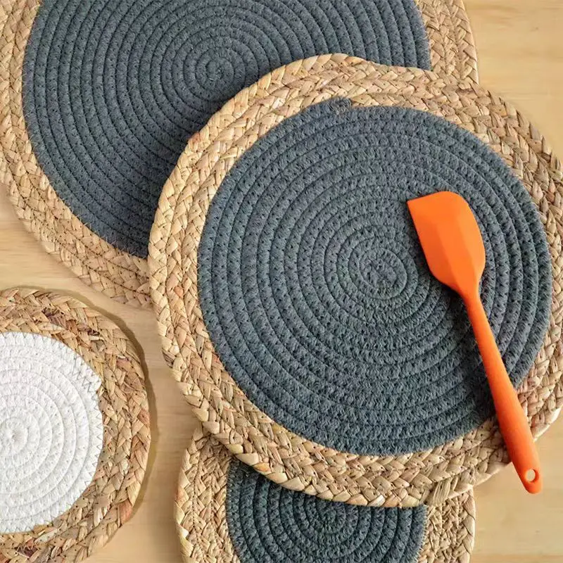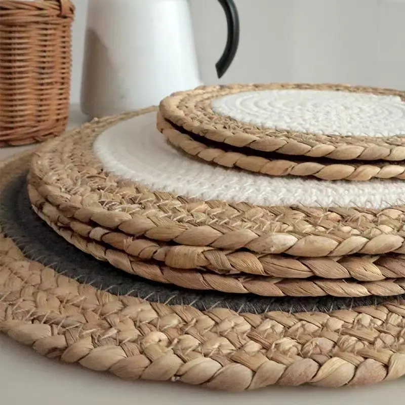 Warm-toned natural grass woven placemats, cotton rope heat-insulating placemats, decorative forest-themed coasters and plate mats