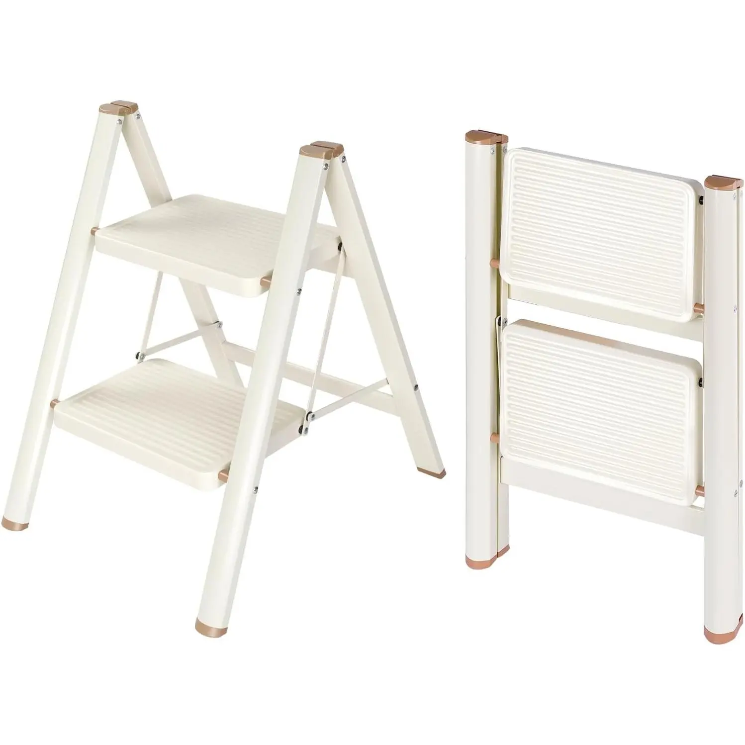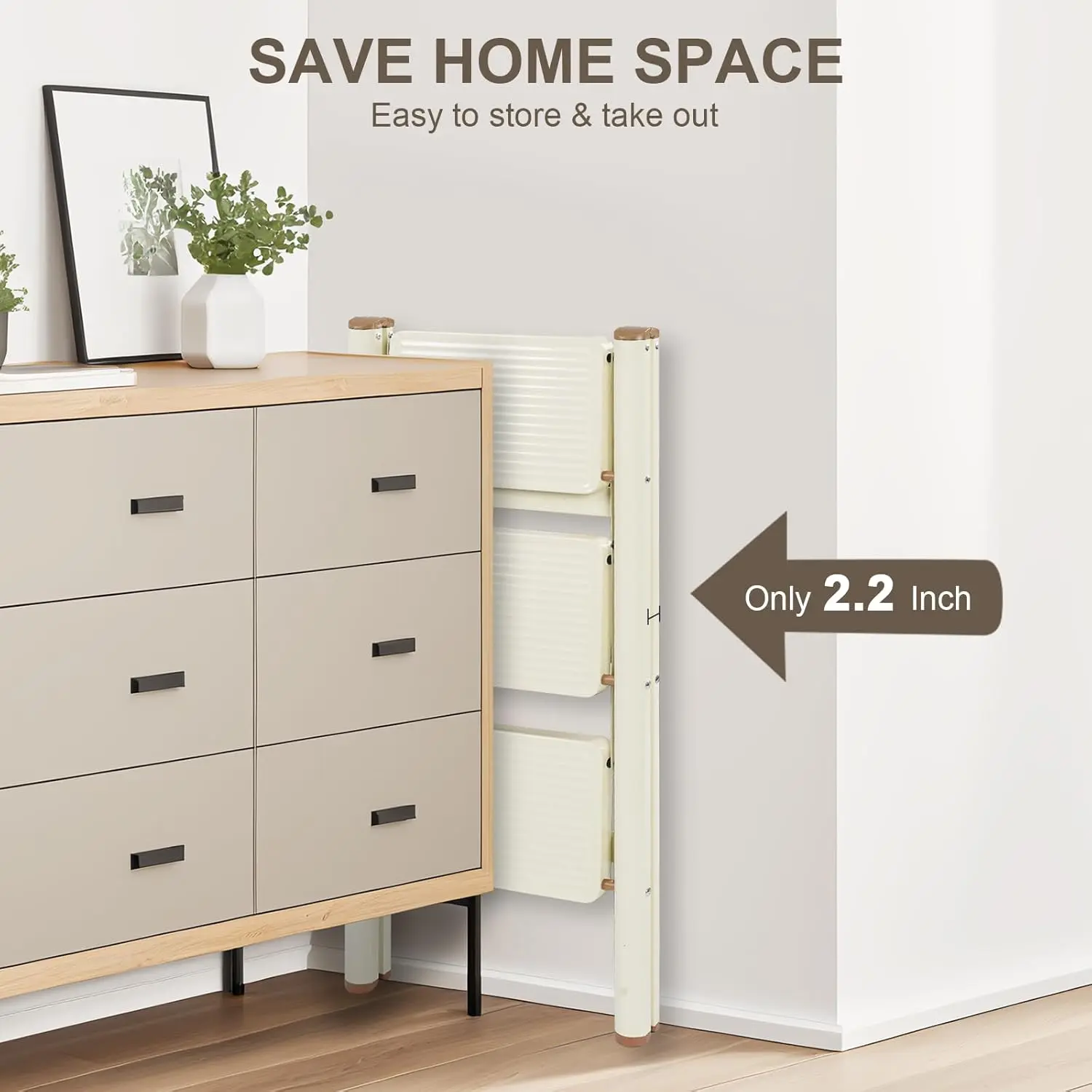 3 Step Ladder,Lightweight Folding Step Stool with Wide Anti-Slip Pedal, 330LBS Capacity, Heavy Duty,Sturdy Iron Metal Step Stool for Home, Kitchen, Closet, Adults, Cream White